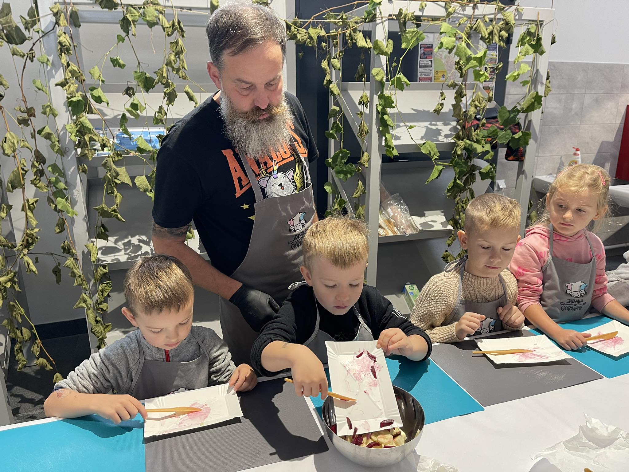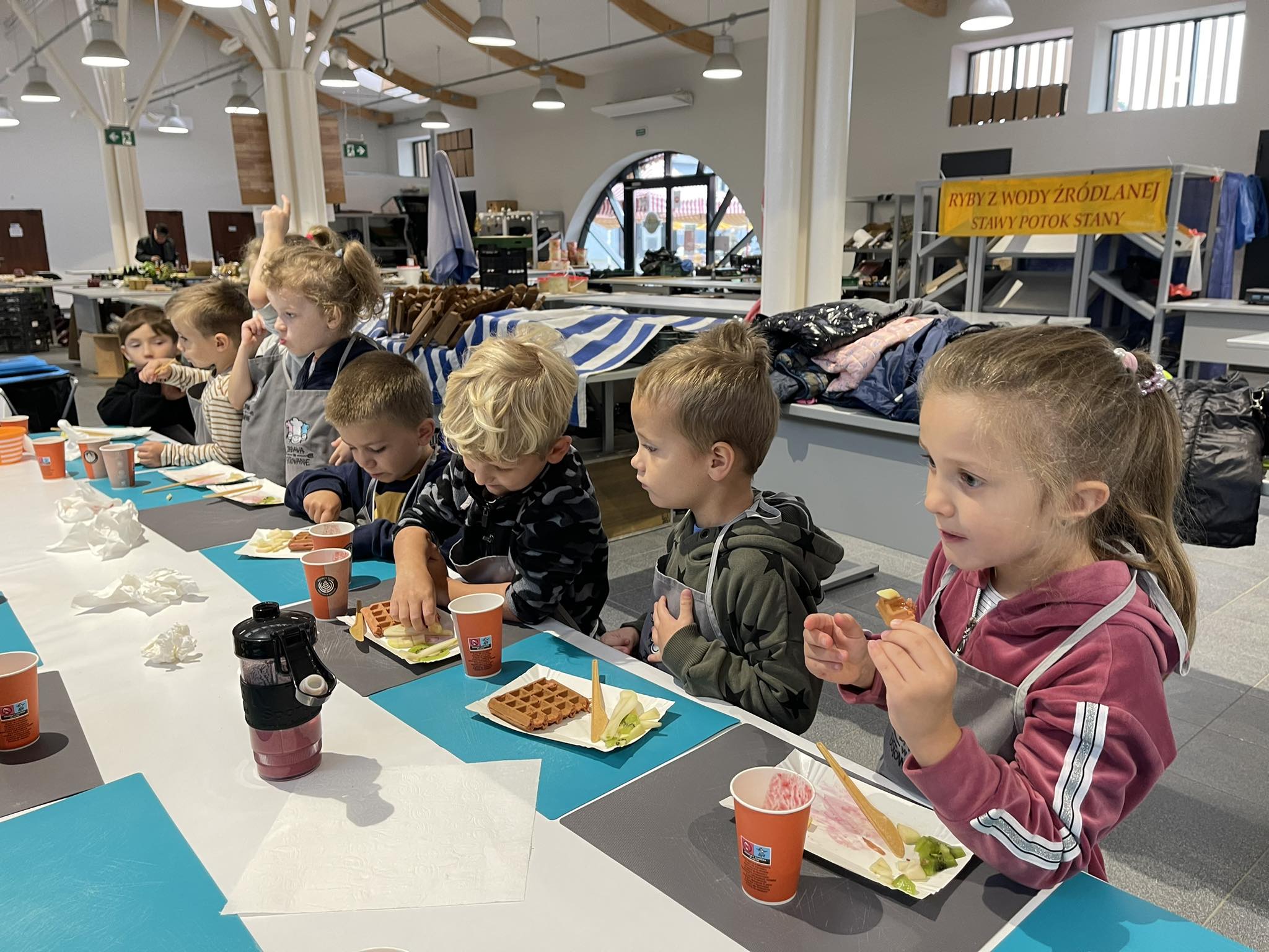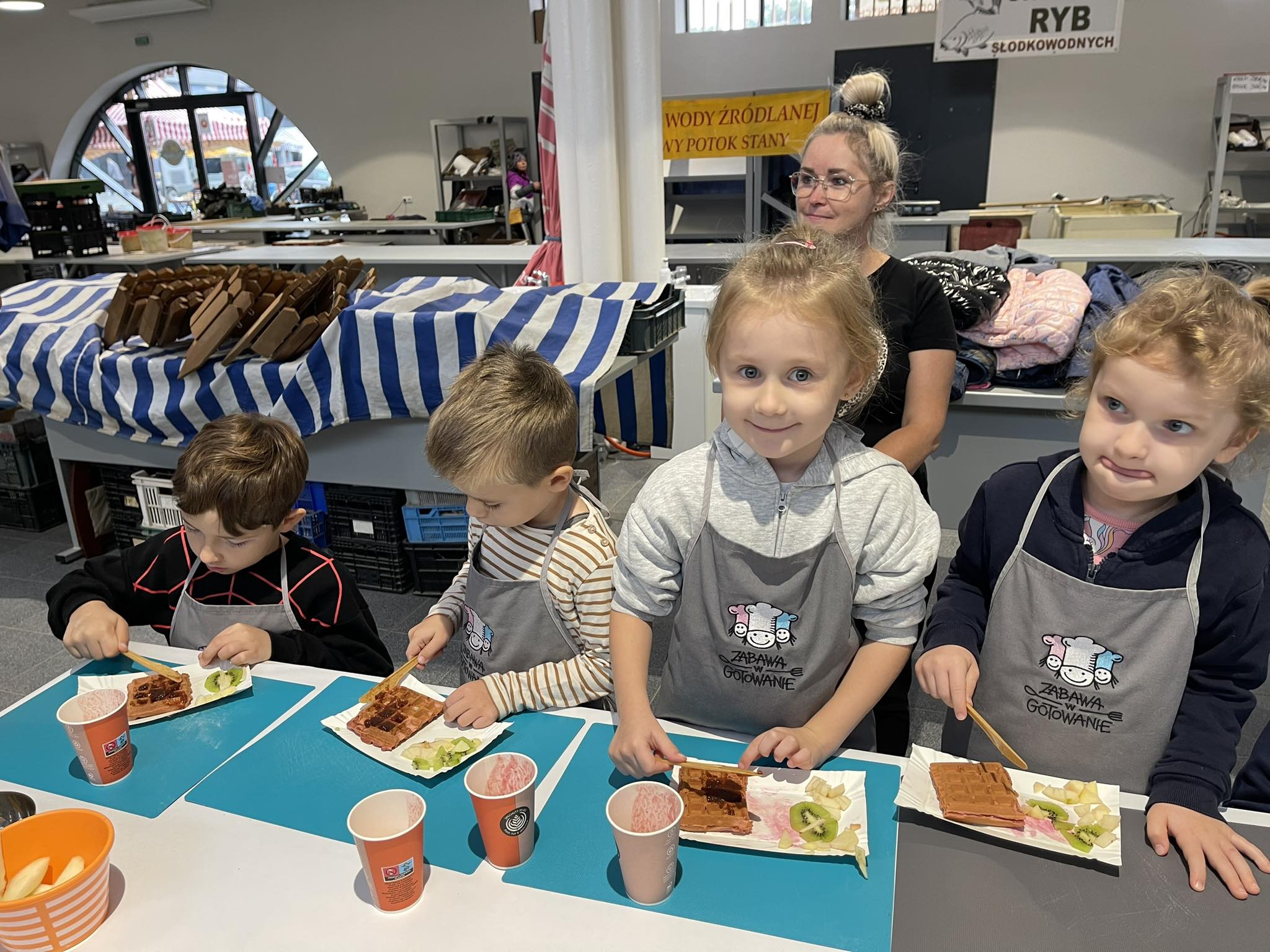 Grupa „Motylki“ wzięła udział w warsztatach kulinarnych, które odbyły się w hali owocowo-warzywnej „Zieleniak“ w Stalowej Woli. Warsztaty prowadzili pani Ewelina oraz Mariusz Szkutnik. Głównym celem warsztatów było odkrywanie przez dzieci nowych smaków i propagowanie zdrowego odżywiania. Dzieci miały przyjemność przygotować pyszny koktajl oraz gofry z dodatkiem buraka. Było pysznie i kolorowo a dokładkom nie było końca.