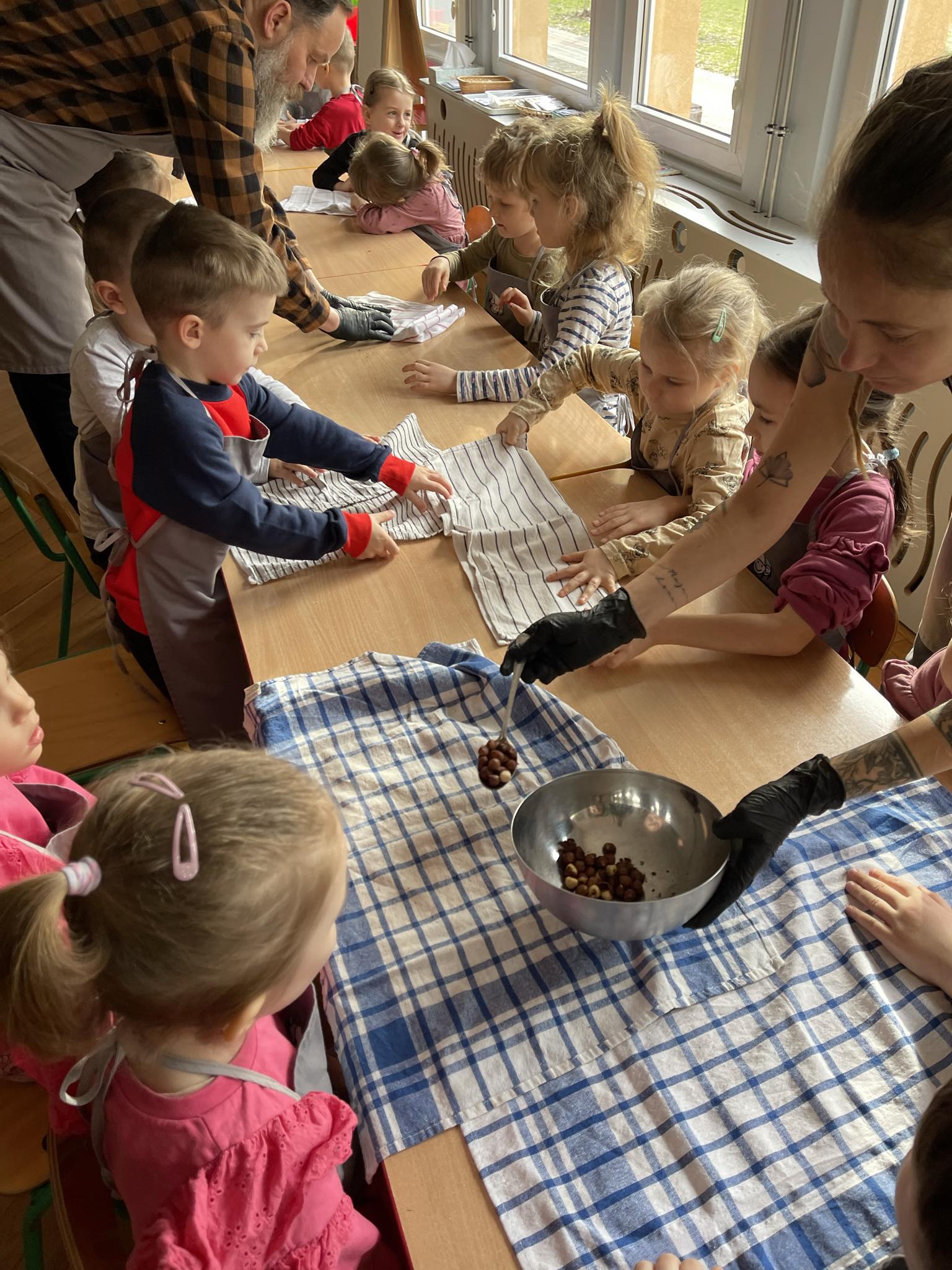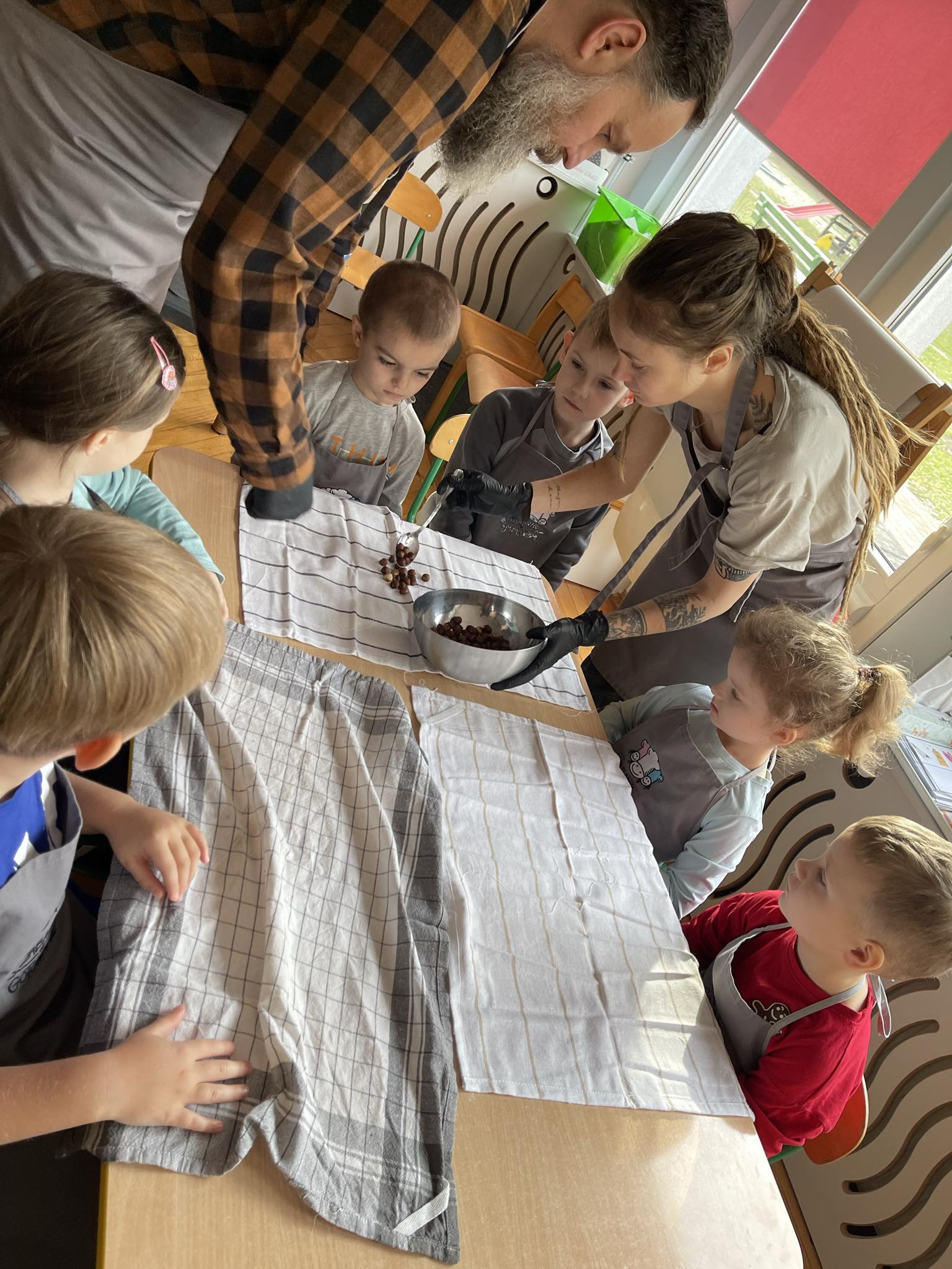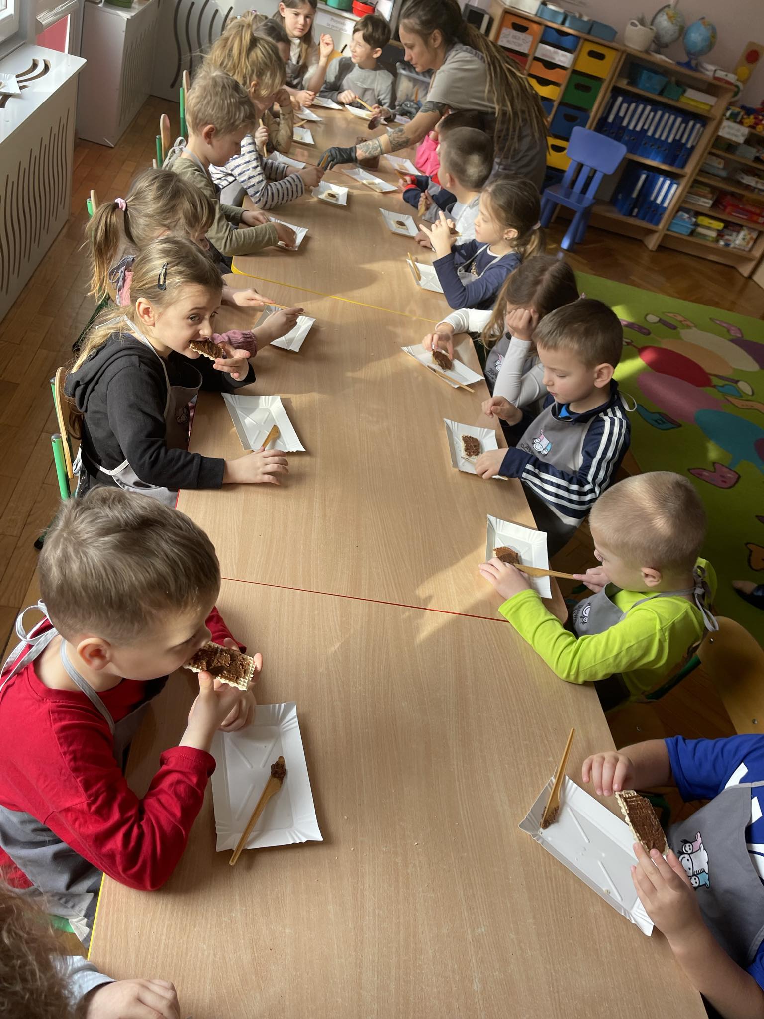 W grupie „Motylki“ odbyły się warsztaty kulinarne. Dzieci miały okazję przygotować zdrową wersję nutelli. Podczas zajęć głównymi bohaterami były daktyle i orzechy laskowe. Przedszkolaki wspólnie krok po kroku przygotowały ten pyszny przysmak. Wszystkim dzieciom bardzo smakowało.