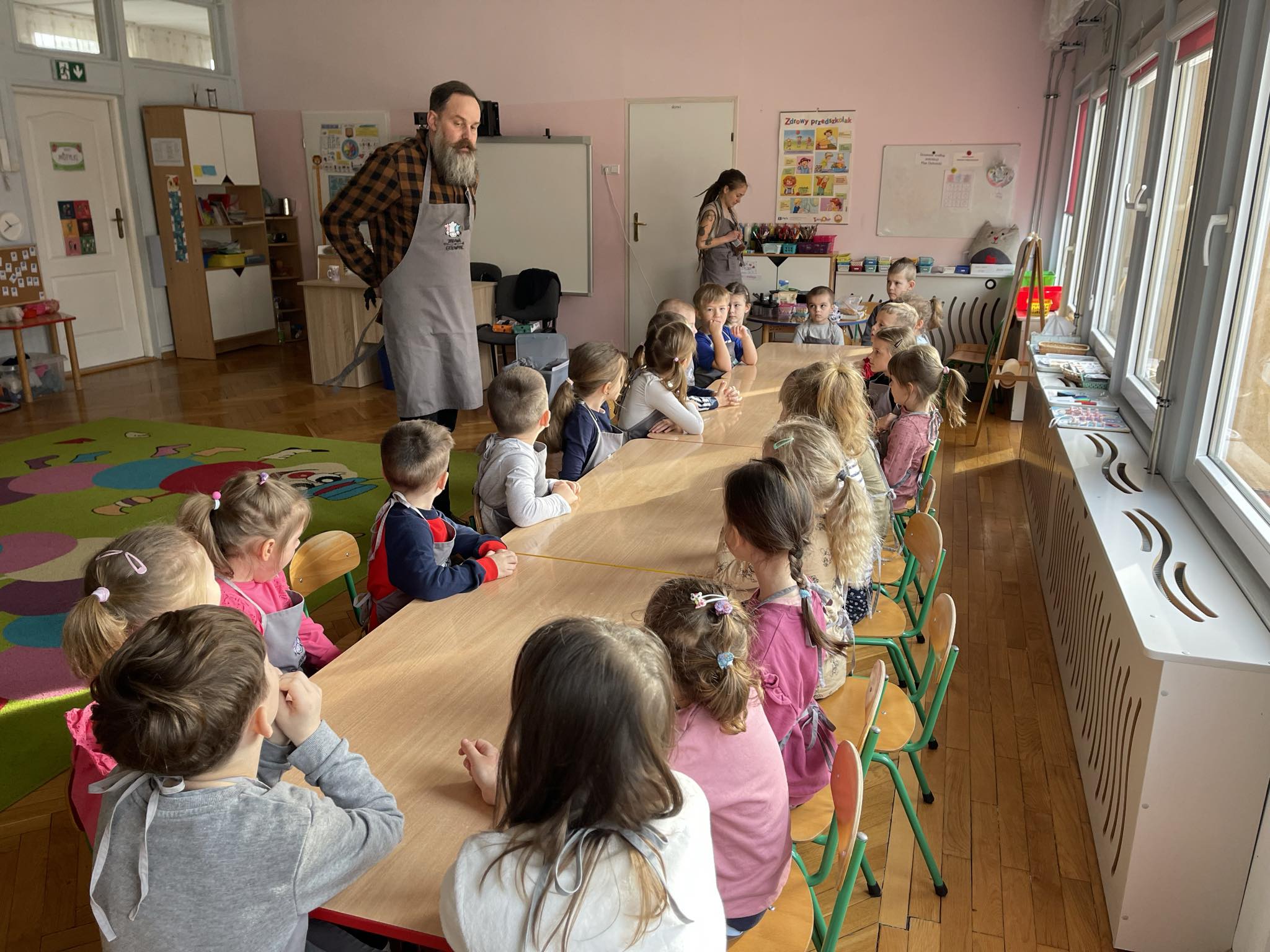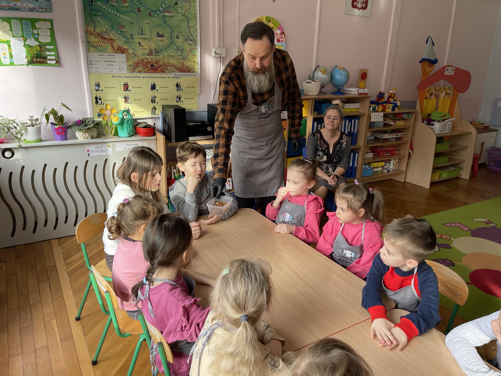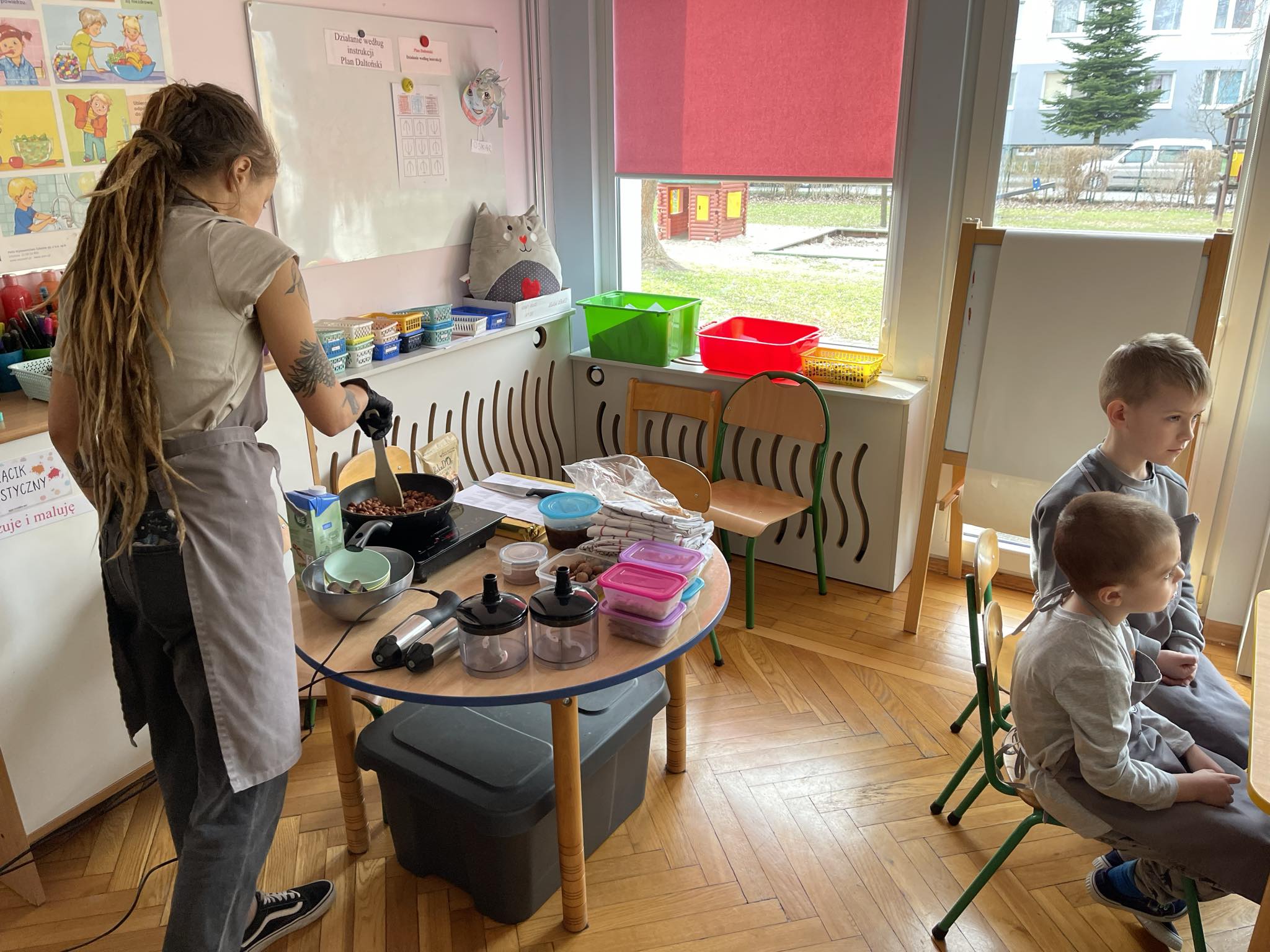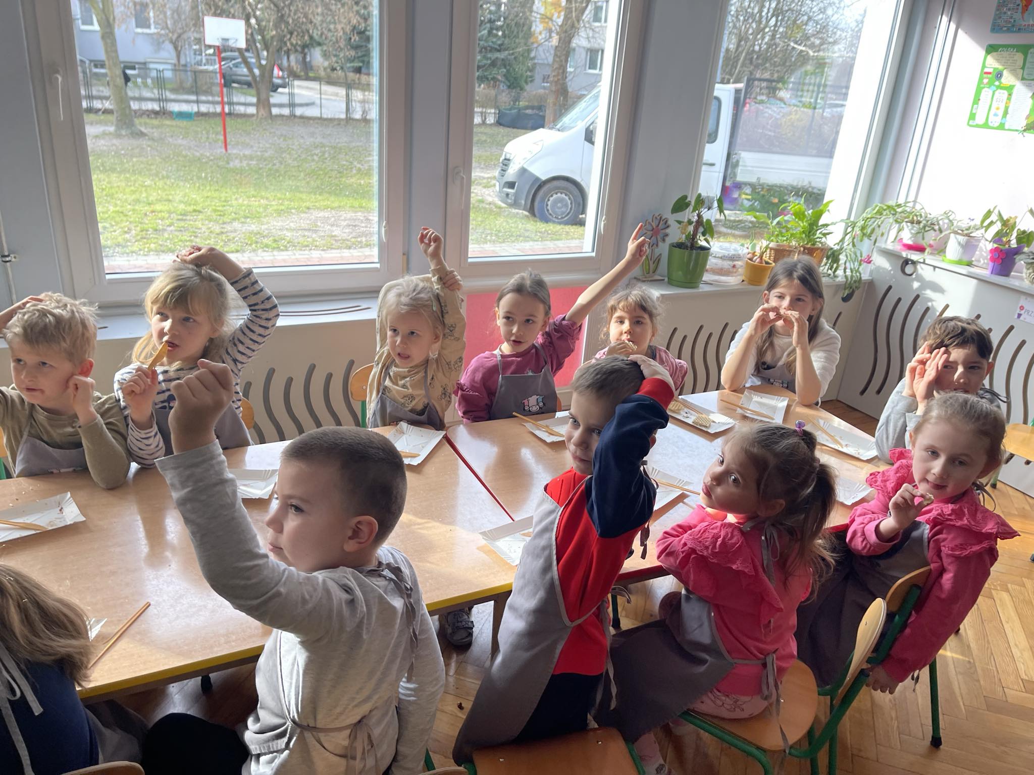 W grupie „Motylki“ odbyły się warsztaty kulinarne. Dzieci miały okazję przygotować zdrową wersję nutelli. Podczas zajęć głównymi bohaterami były daktyle i orzechy laskowe. Przedszkolaki wspólnie krok po kroku przygotowały ten pyszny przysmak. Wszystkim dzieciom bardzo smakowało.