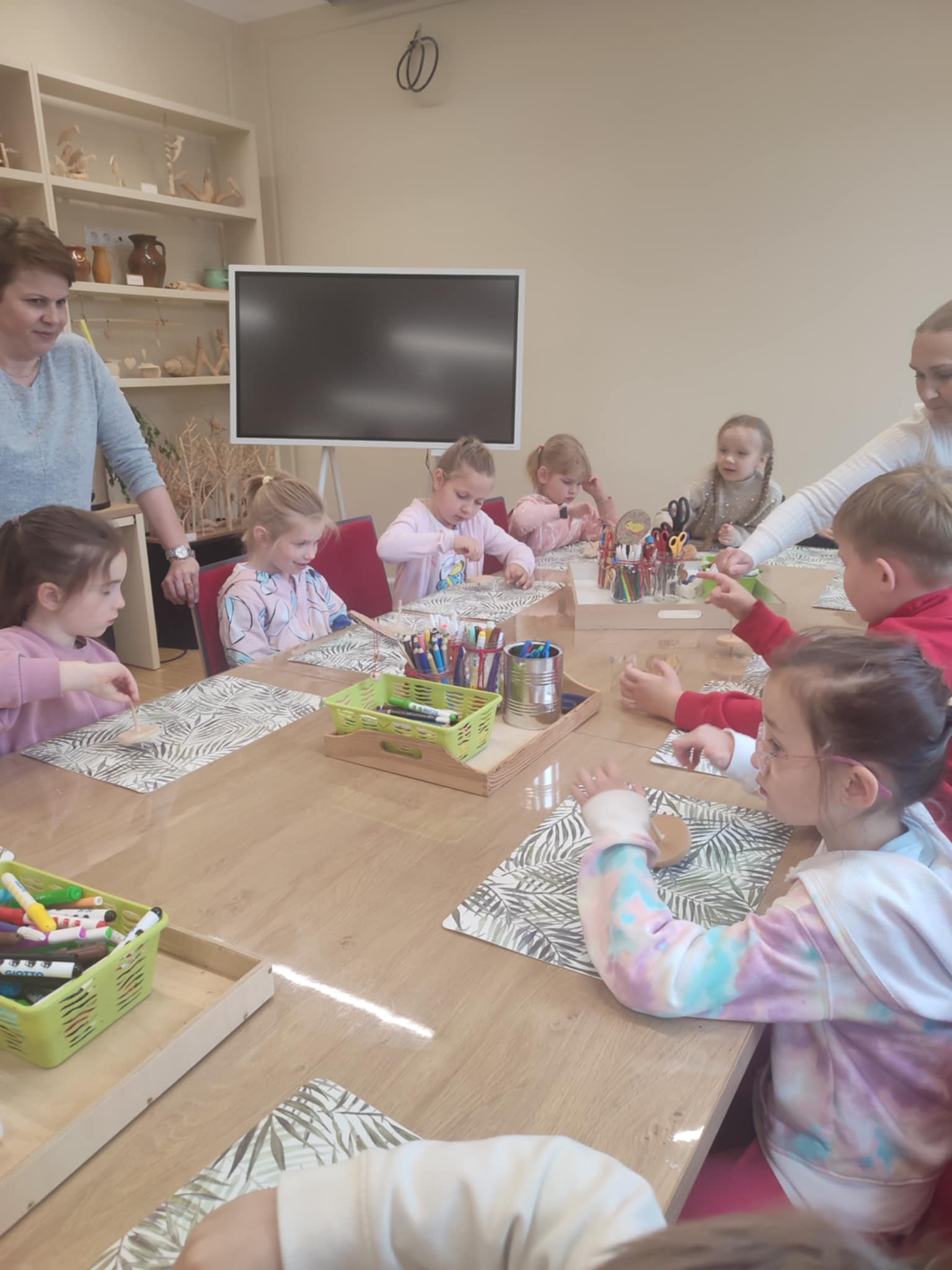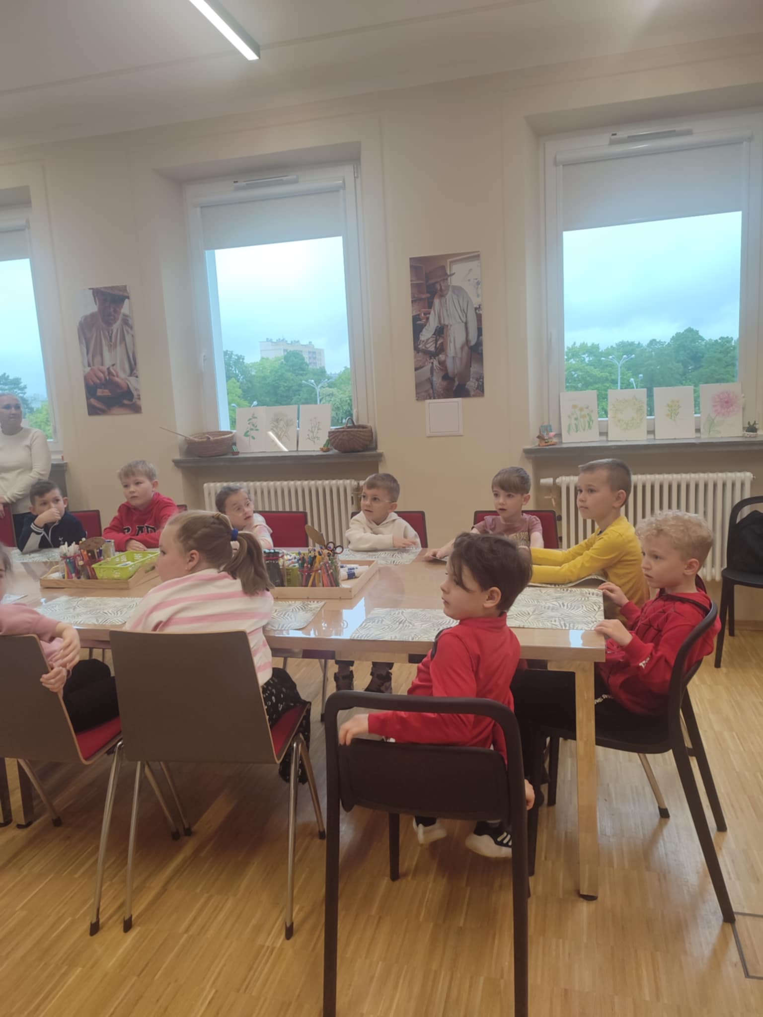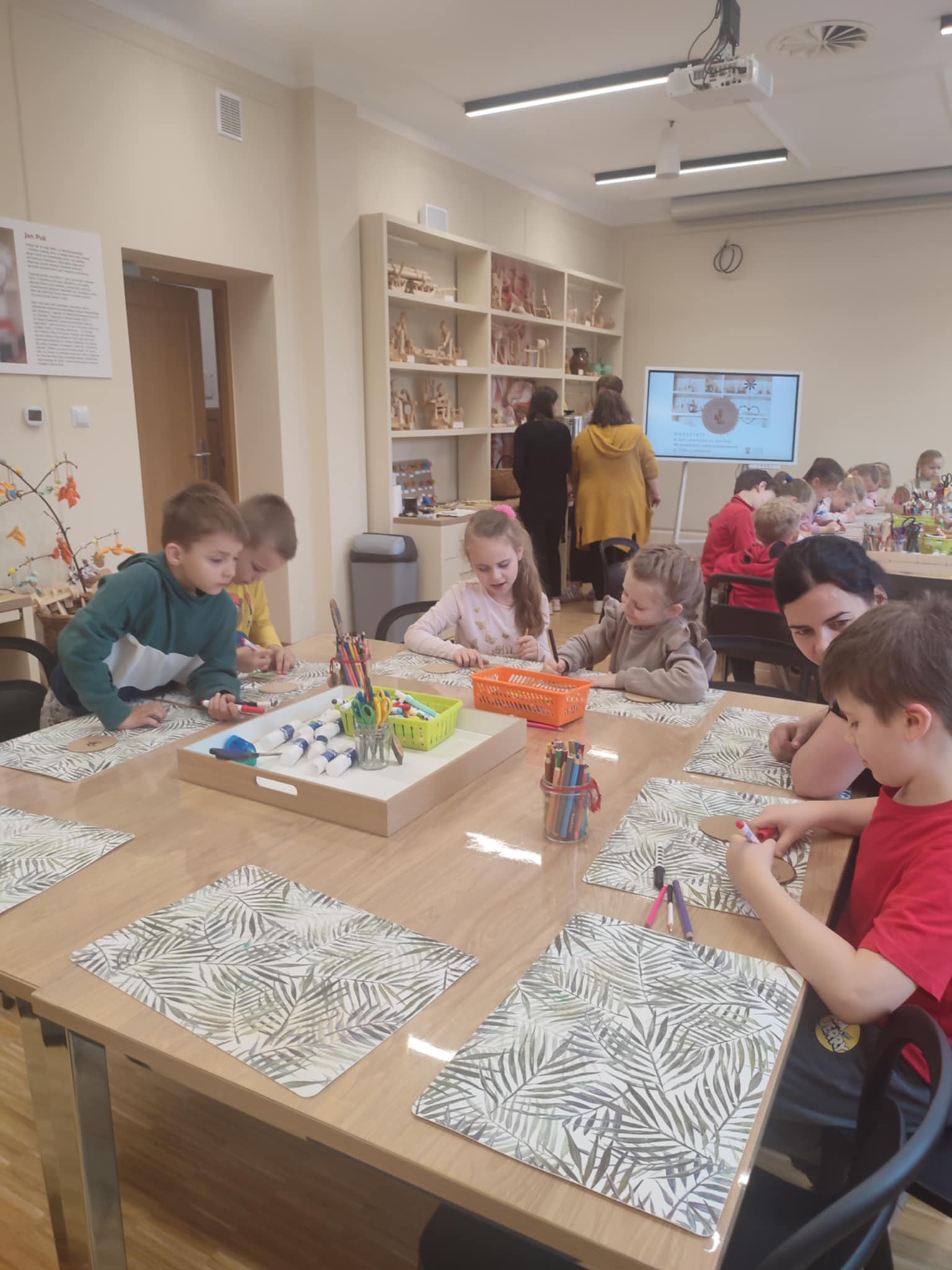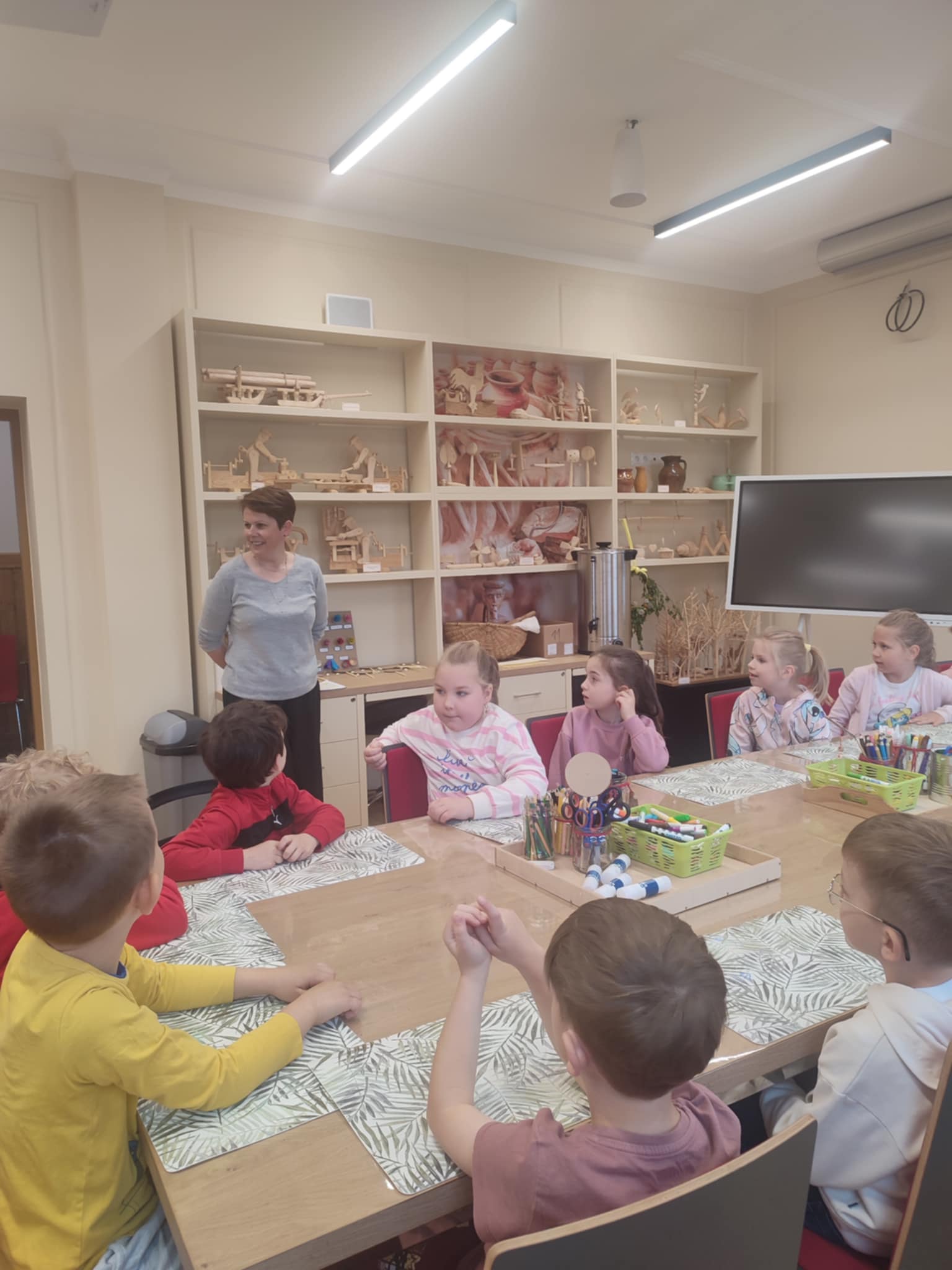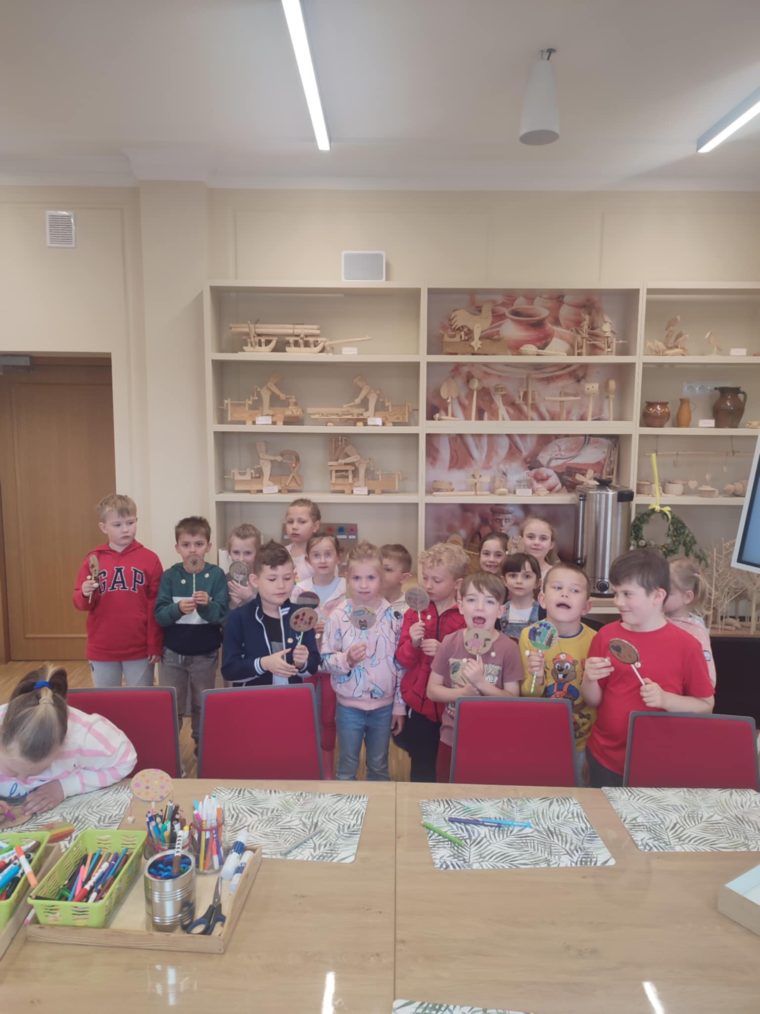 15.05.2025 r. dzieci z grupy ,,Zajączki” wybrały się do Miejskiego Domu Kultury w Stalowej Woli na warsztaty pt. ,, Półka z zabawkami w Izbie Lasowiackiej im. Jana Puka”. Przedszkolaki zapoznały się z dawnymi lasowiackimi zwyczajami, przekonały się jak kiedyś wyglądało życie na wsi, jakich sprzętów gospodarczych używano i jakie prace wiejskie wykonywano. Panie prowadzące przybliżyły dzieciom postać pana Jana Puka - słynnego artysty ludowego tworzącego zabawki z drewna. Przedszkolaki obejrzały bajkę ,,O cudownym zielu”. Podczas warsztatów manualnych dzieci wykonały własną zabawkę z naturalnych materiałów, którą pokolorowały według własnego pomysłu rozwijając kreatywność i twórcze myślenie.
