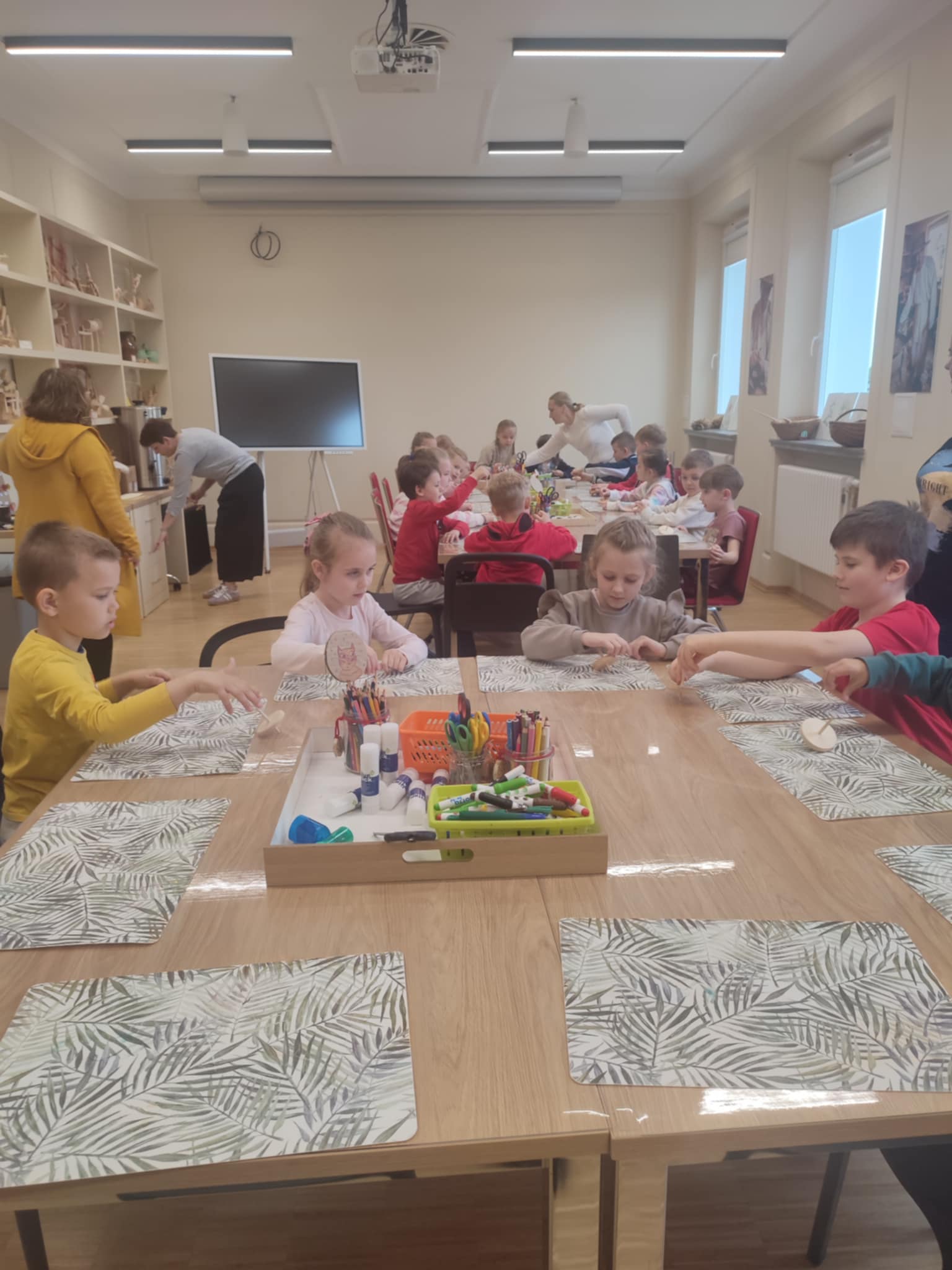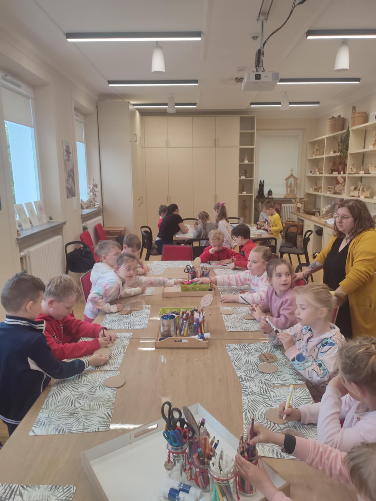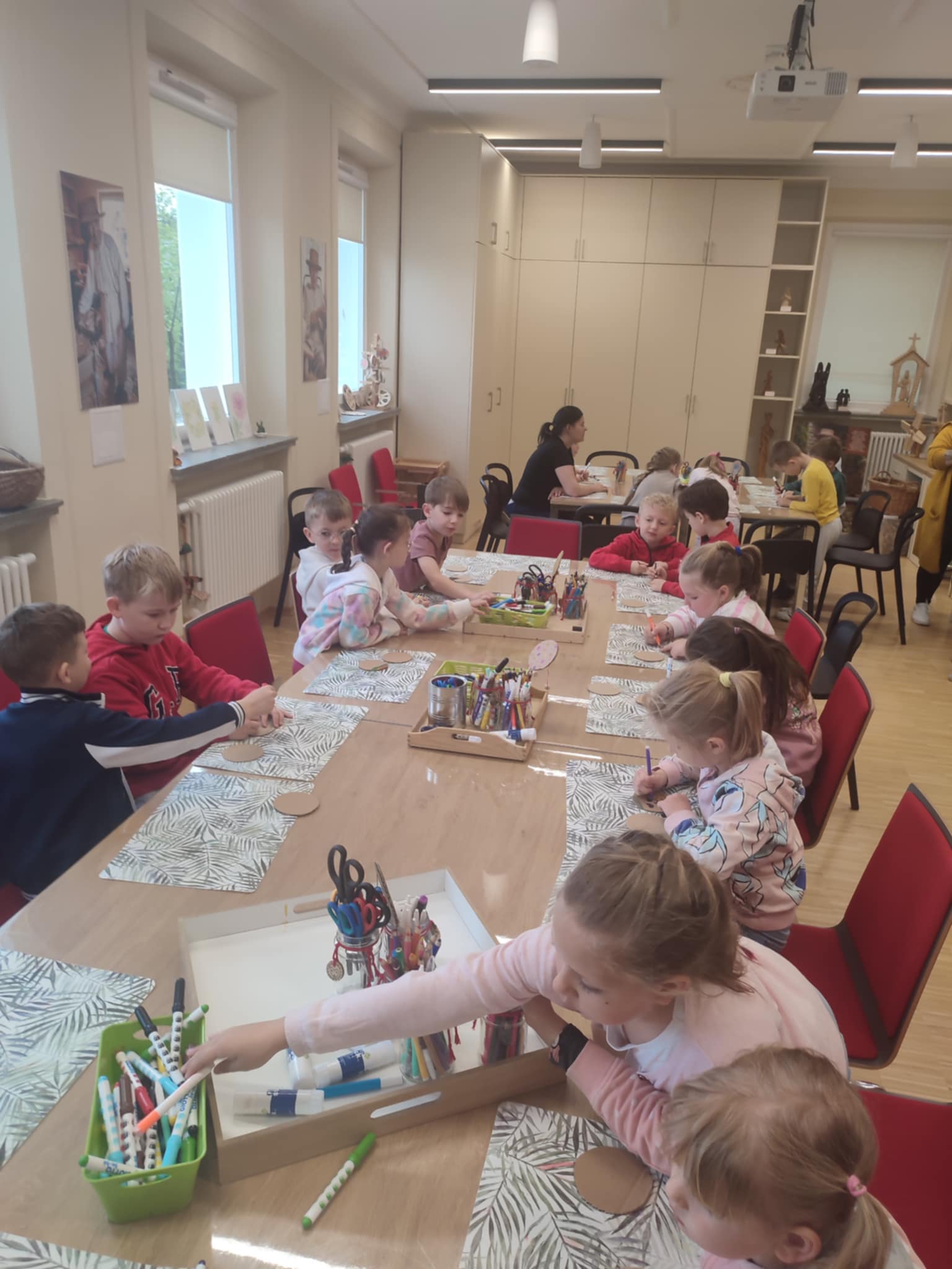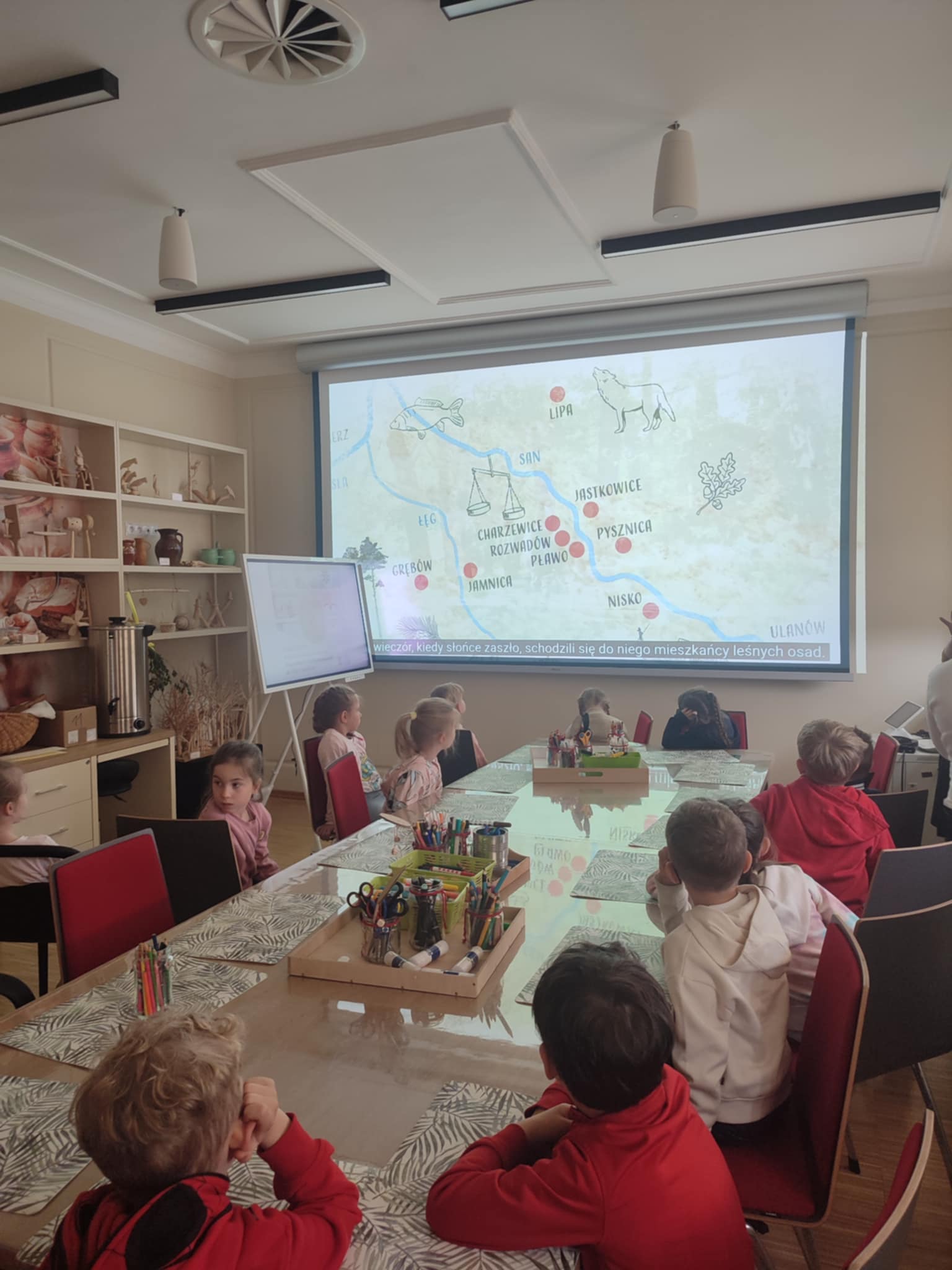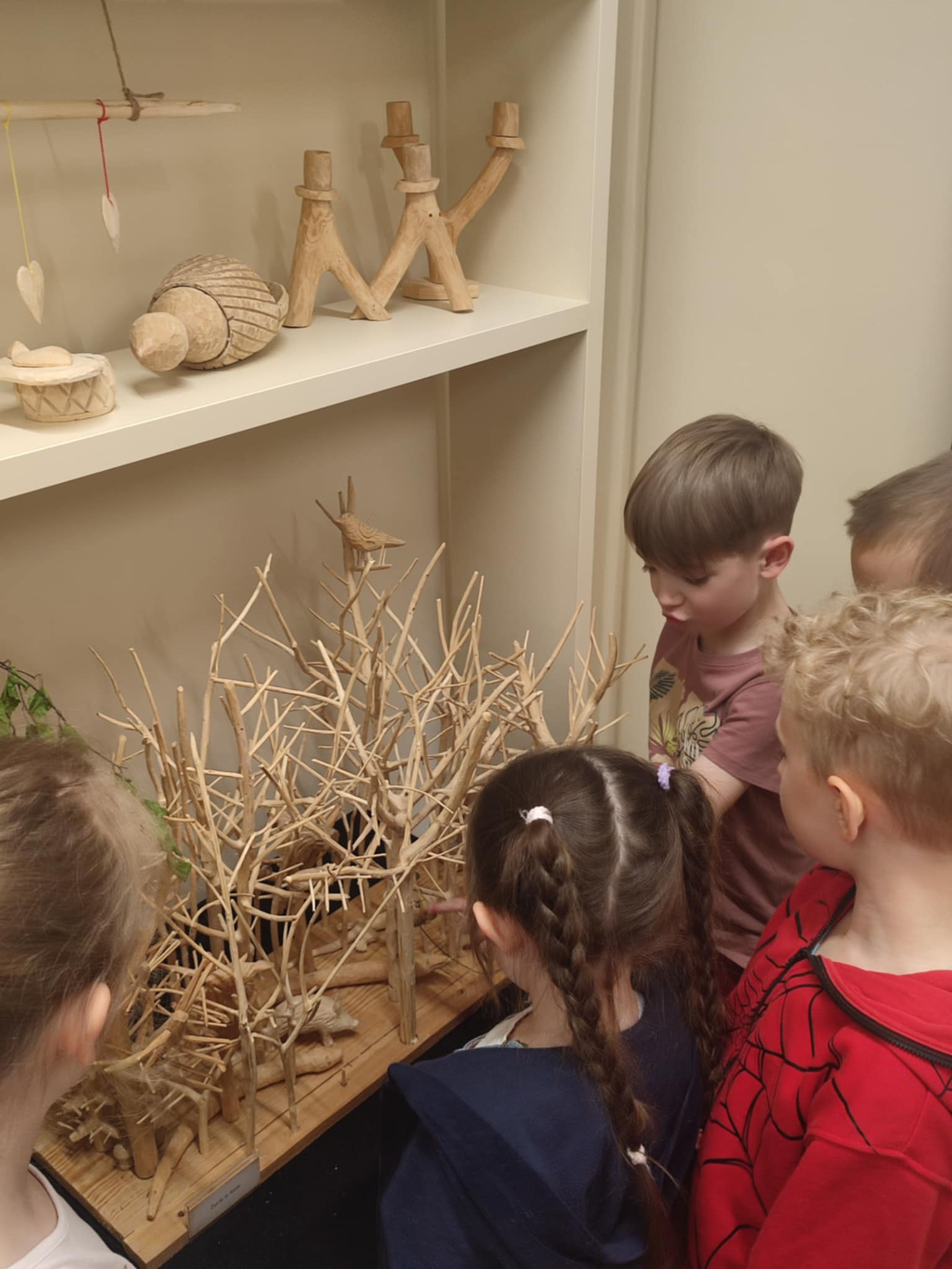 15.05.2025 r. dzieci z grupy ,,Zajączki” wybrały się do Miejskiego Domu Kultury w Stalowej Woli na warsztaty pt. ,, Półka z zabawkami w Izbie Lasowiackiej im. Jana Puka”. Przedszkolaki zapoznały się z dawnymi lasowiackimi zwyczajami, przekonały się jak kiedyś wyglądało życie na wsi, jakich sprzętów gospodarczych używano i jakie prace wiejskie wykonywano. Panie prowadzące przybliżyły dzieciom postać pana Jana Puka - słynnego artysty ludowego tworzącego zabawki z drewna. Przedszkolaki obejrzały bajkę ,,O cudownym zielu”. Podczas warsztatów manualnych dzieci wykonały własną zabawkę z naturalnych materiałów, którą pokolorowały według własnego pomysłu rozwijając kreatywność i twórcze myślenie.