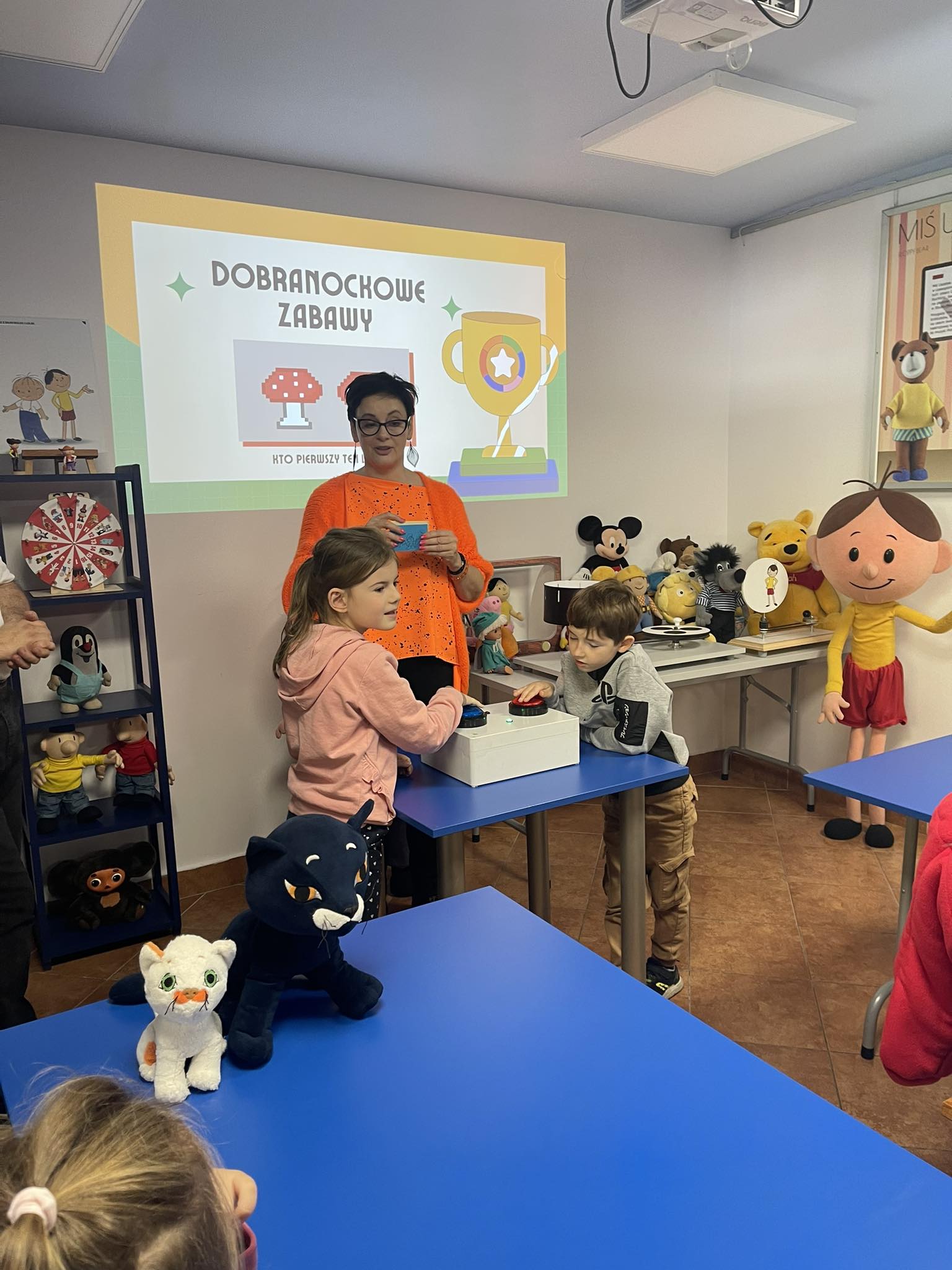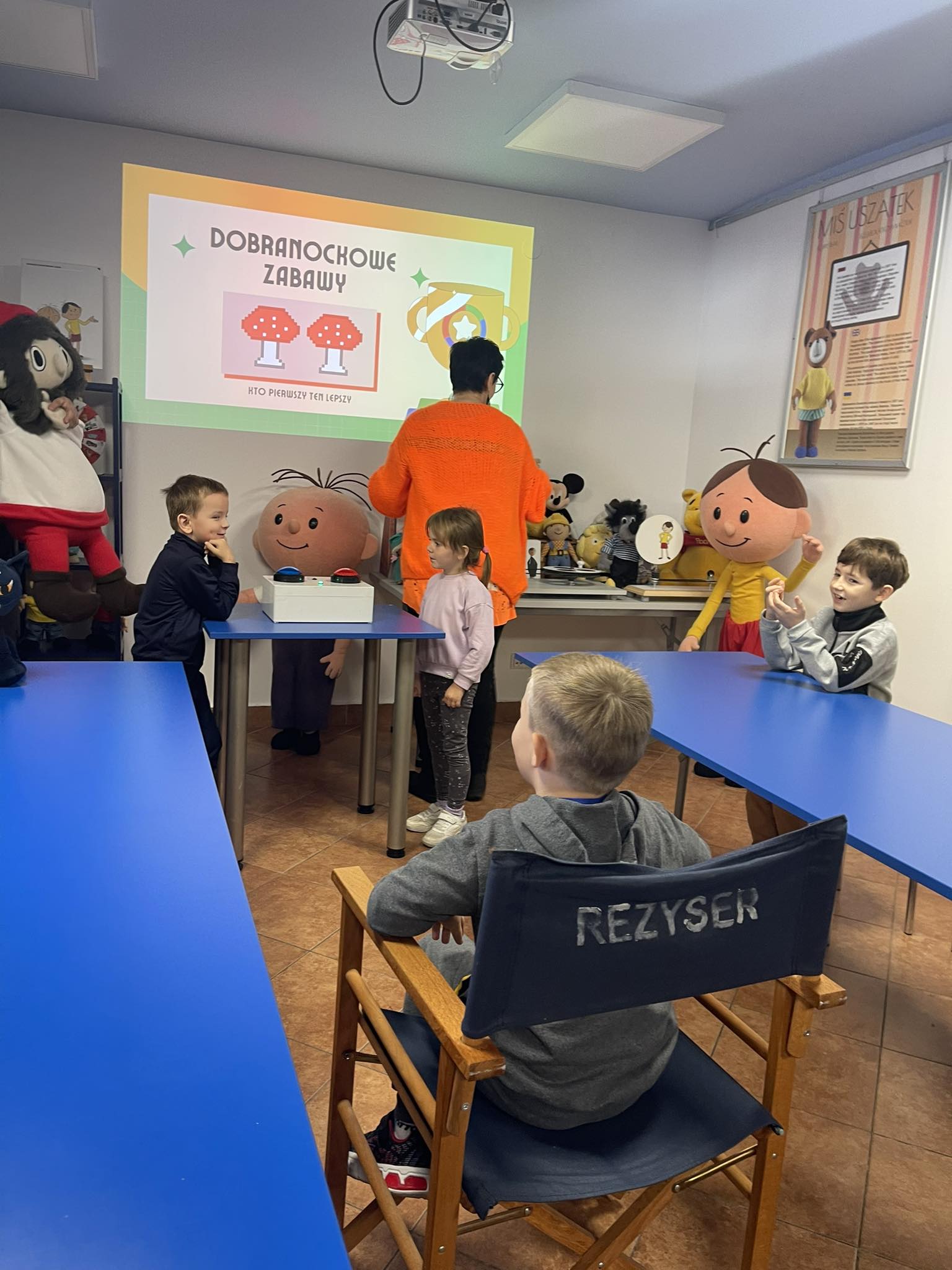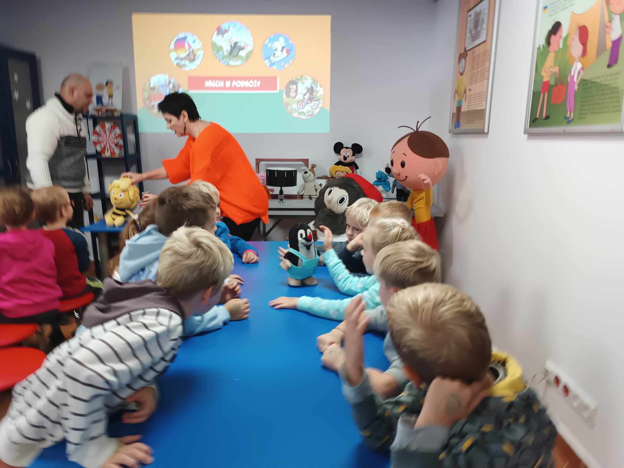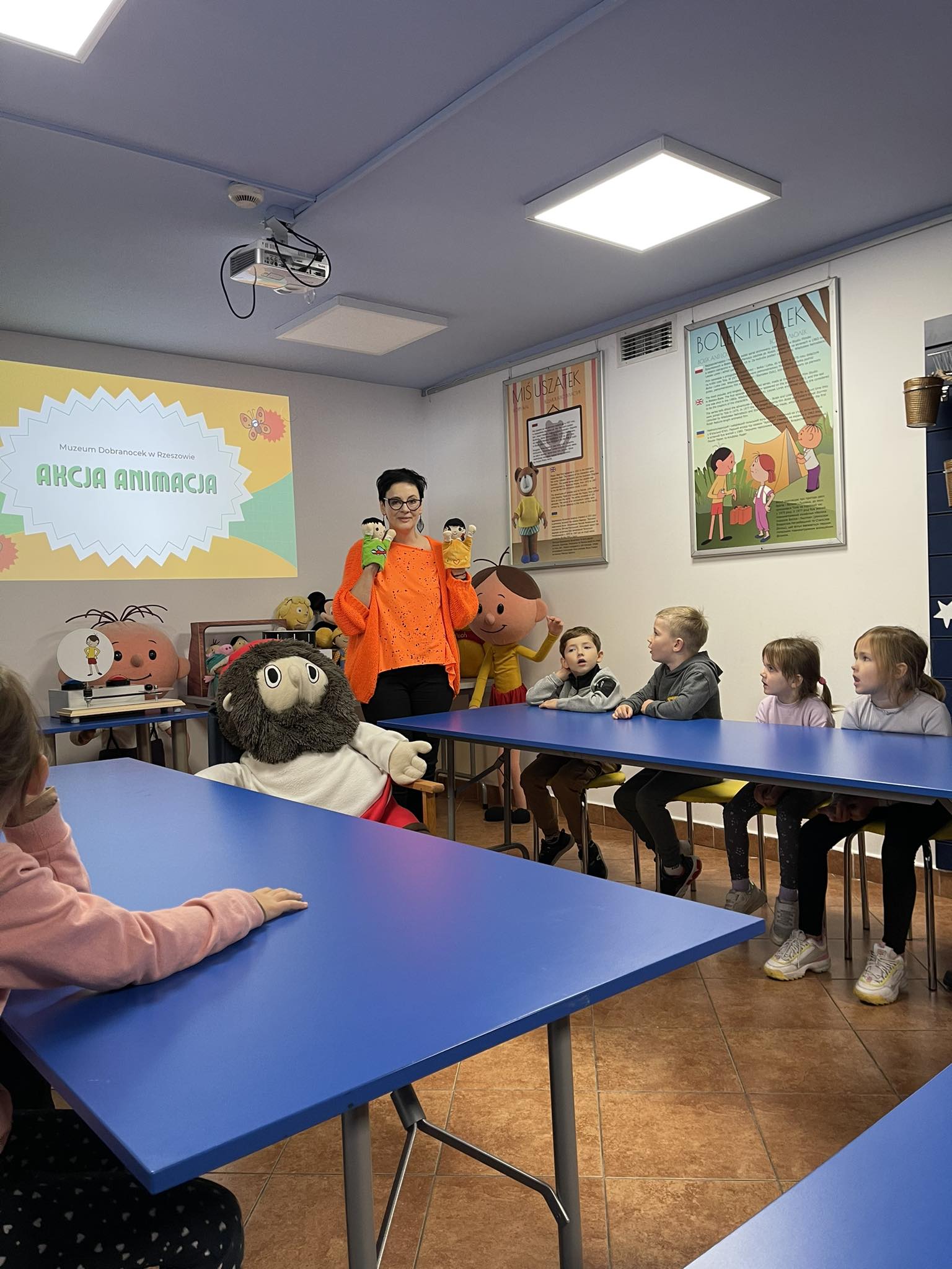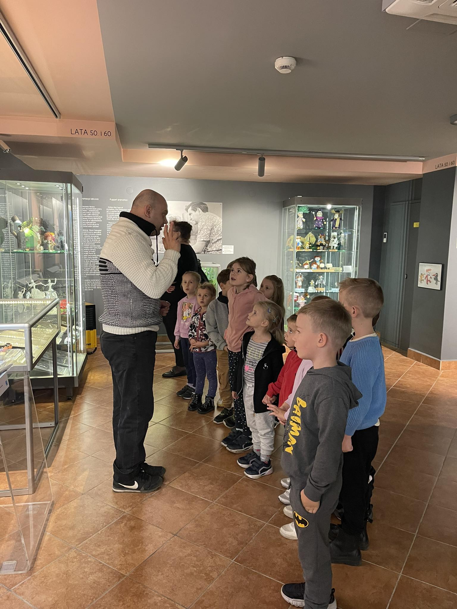 8.10.2023 r. przedszkolaki z grup „Motylki“ i „Zajączki“ udały się na wycieczkę do Muzeum Dobranocek w Rzeszowie. Była to okazja, by w czasach wciąż dostępnych bajek dowiedzieć się, czym były dobranocki i jakie miały one znaczenie dla ówczesnych dzieci. W muzealnych gablotach dzieci mogły zobaczyć bohaterów takich dobranocek, jak: Miś Uszatek, Przygody Misia Colargola, Rumcajs, Przygody Bolka i Lolka, Krecik, Reksio i wiele innych postaci. Dzieci mogły też zobaczyć oryginalne lalki z dobranocek produkowanych w Studiu Małych Form Filmowych SEMAFOR w Łodzi, czy dowiedzieć się, jak powstawały bajki w Studio Filmów Rysunkowych w Bielsku-Białej. Poznały historie dobranocek i wielu bajkowych bohaterów, a na koniec podsumowały swą wiedzę, biorąc udział w quizie. Same też przygotowały swoja małą animację. Chętnie też obejrzały dobranocki w muzealnej sali kinowej. Był to bardzo udany dzień.