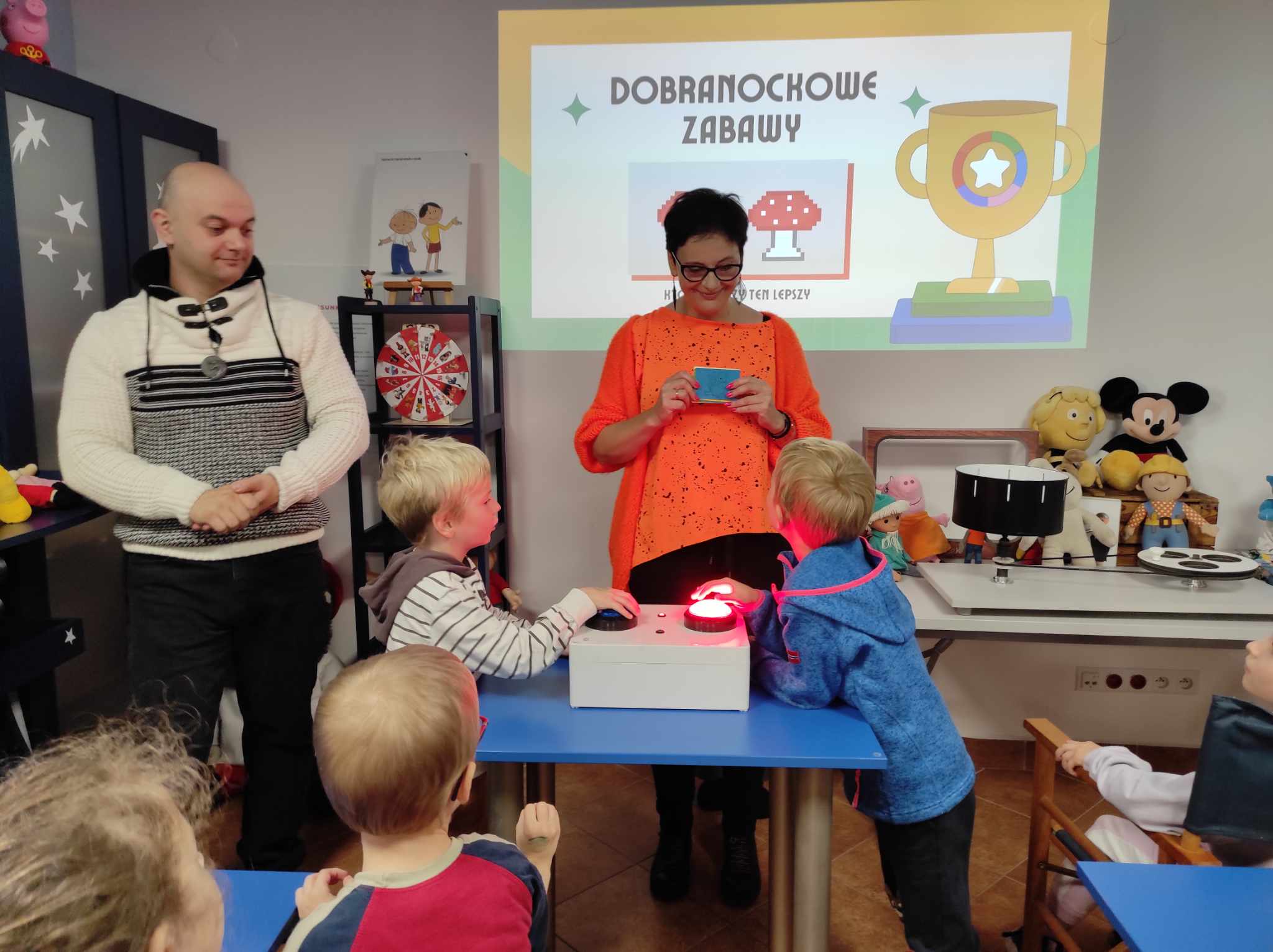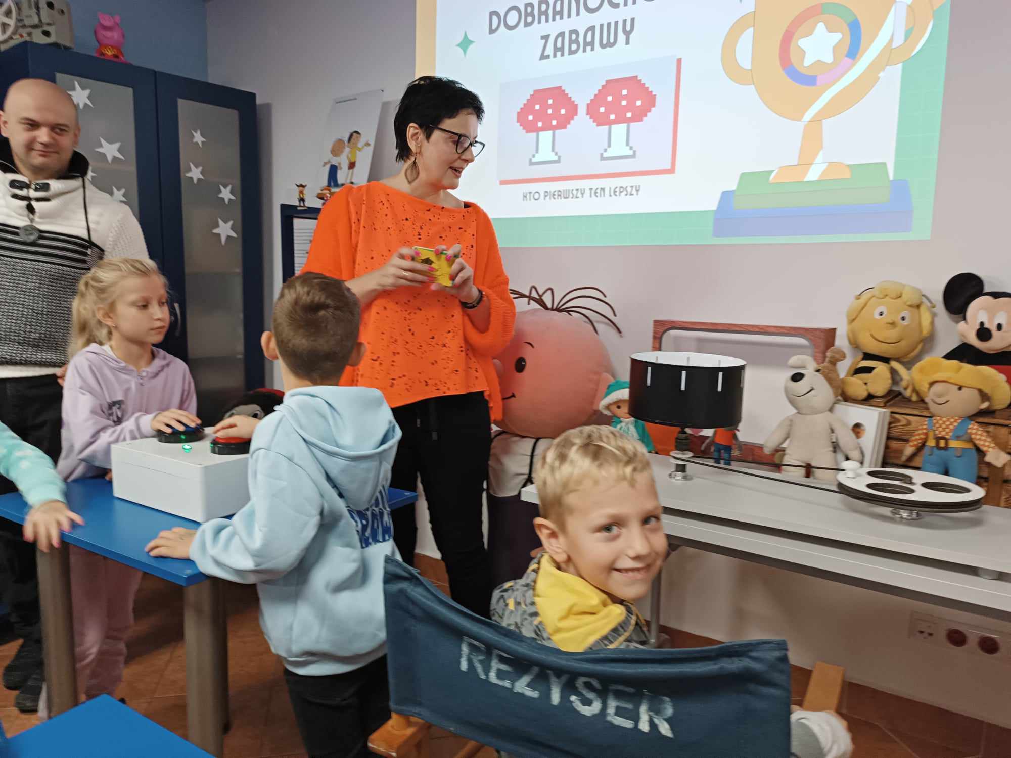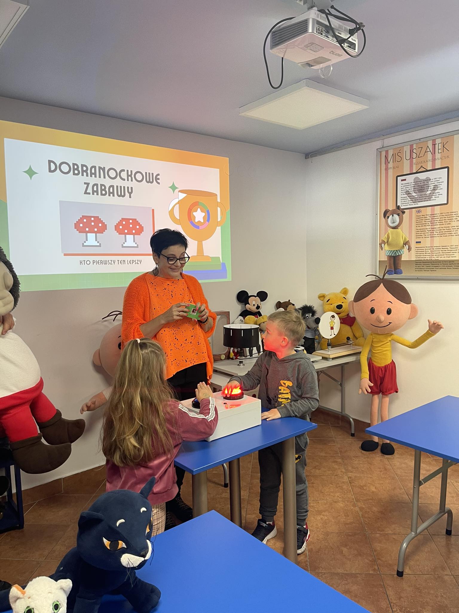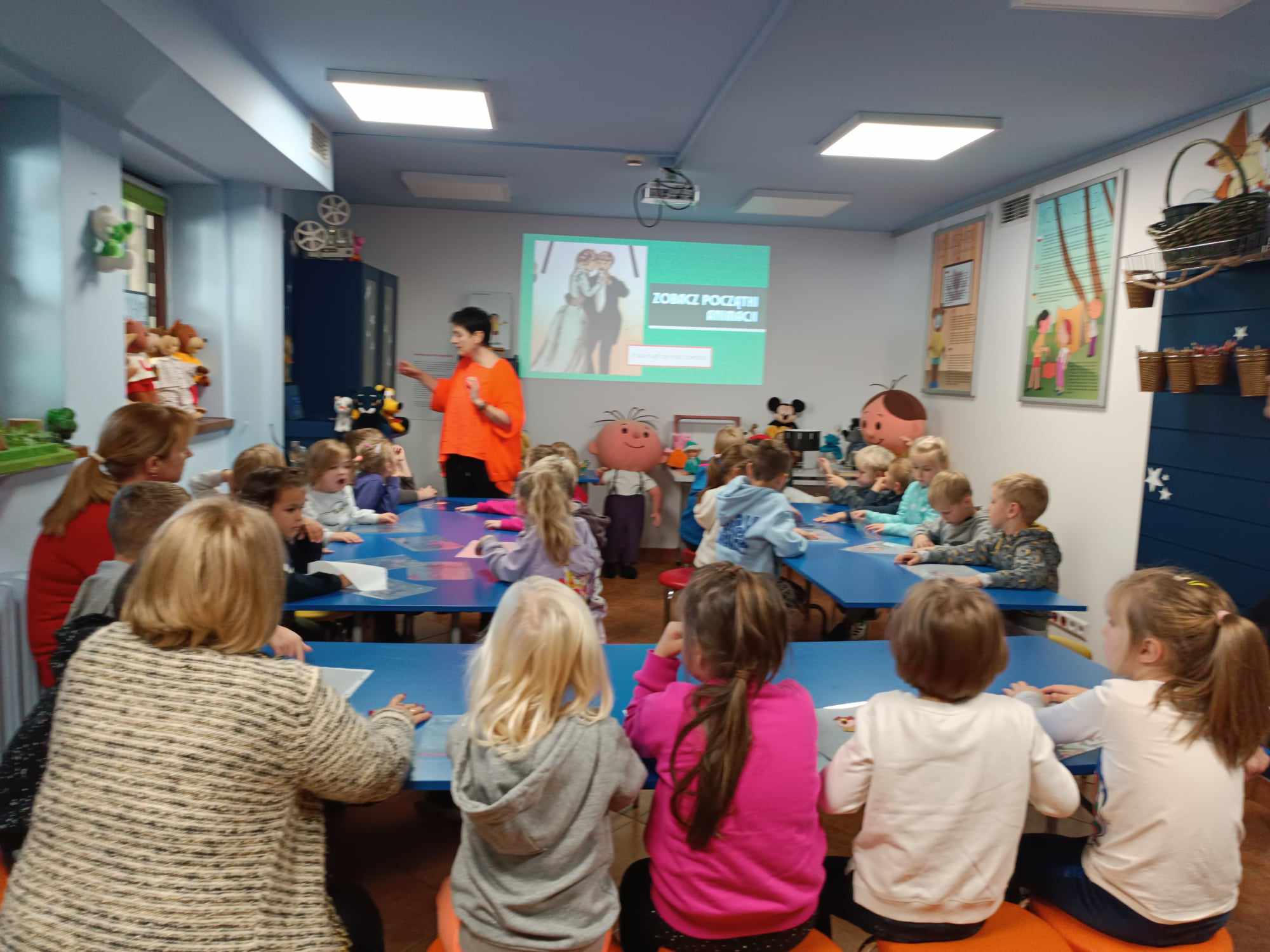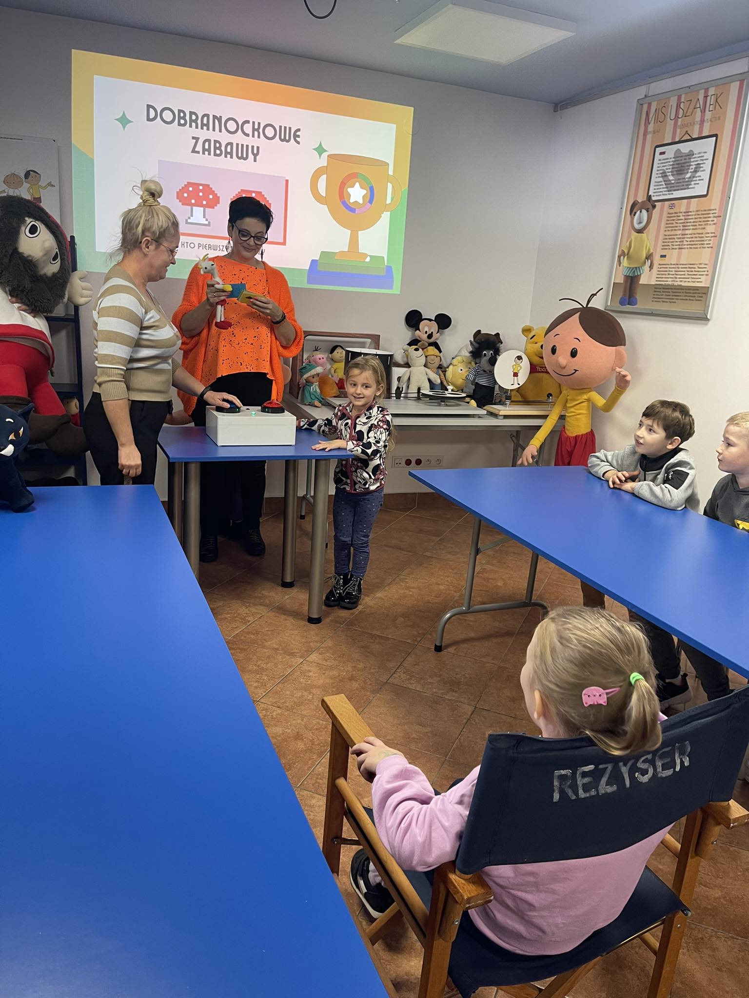 8.10.2023 r. przedszkolaki z grup „Motylki“ i „Zajączki“ udały się na wycieczkę do Muzeum Dobranocek w Rzeszowie. Była to okazja, by w czasach wciąż dostępnych bajek dowiedzieć się, czym były dobranocki i jakie miały one znaczenie dla ówczesnych dzieci. W muzealnych gablotach dzieci mogły zobaczyć bohaterów takich dobranocek, jak: Miś Uszatek, Przygody Misia Colargola, Rumcajs, Przygody Bolka i Lolka, Krecik, Reksio i wiele innych postaci. Dzieci mogły też zobaczyć oryginalne lalki z dobranocek produkowanych w Studiu Małych Form Filmowych SEMAFOR w Łodzi, czy dowiedzieć się, jak powstawały bajki w Studio Filmów Rysunkowych w Bielsku-Białej. Poznały historie dobranocek i wielu bajkowych bohaterów, a na koniec podsumowały swą wiedzę, biorąc udział w quizie. Same też przygotowały swoja małą animację. Chętnie też obejrzały dobranocki w muzealnej sali kinowej. Był to bardzo udany dzień.