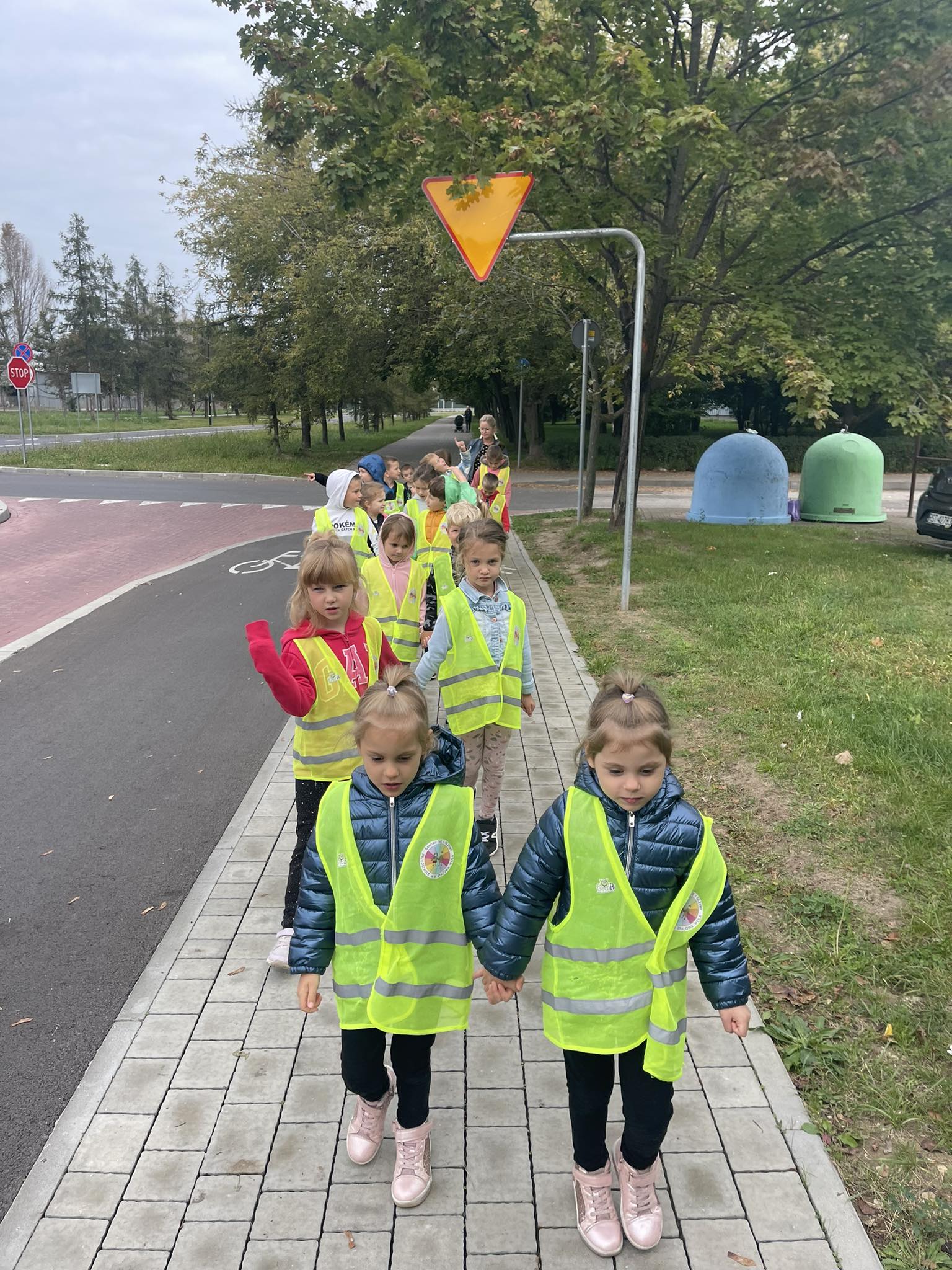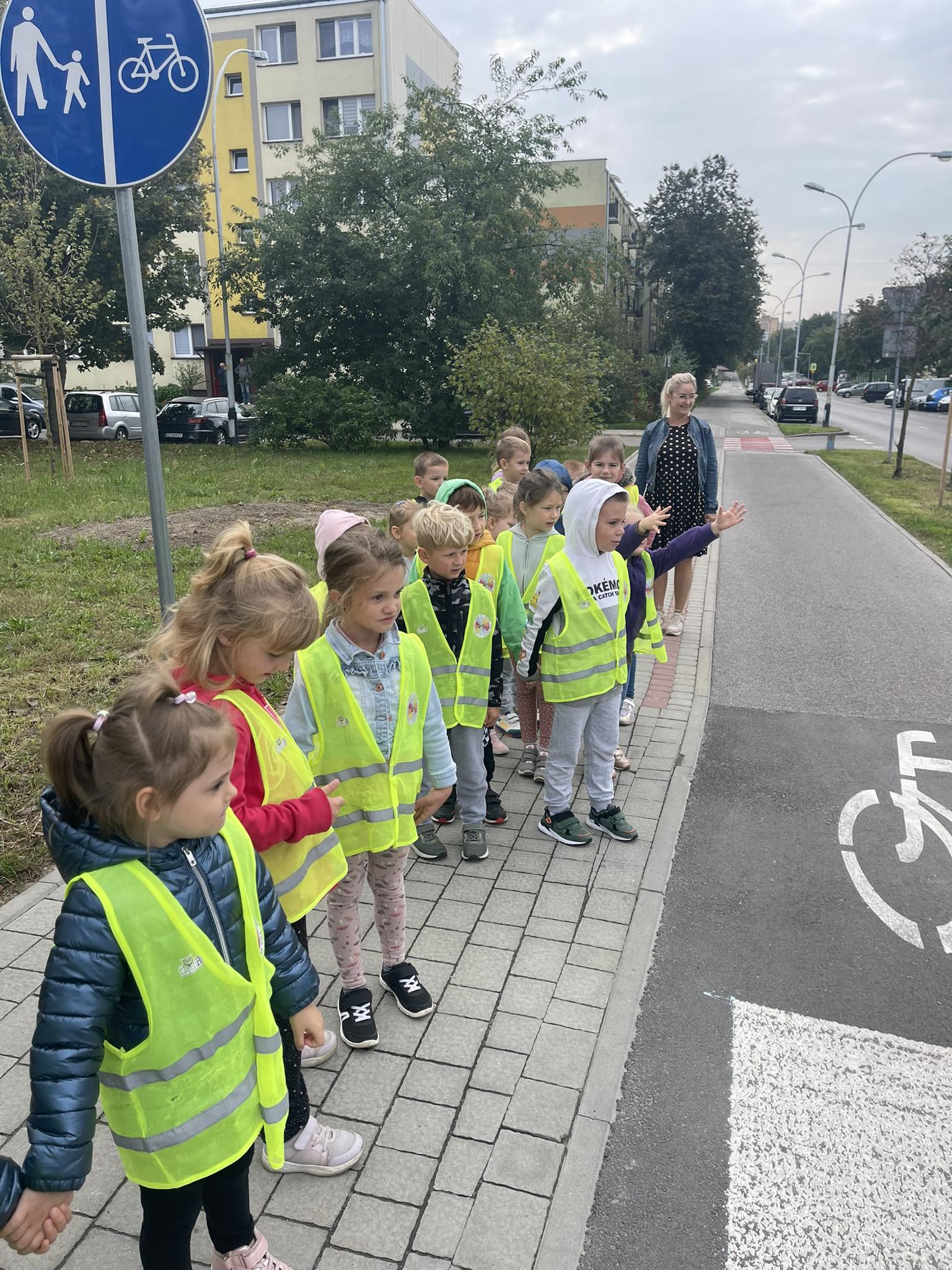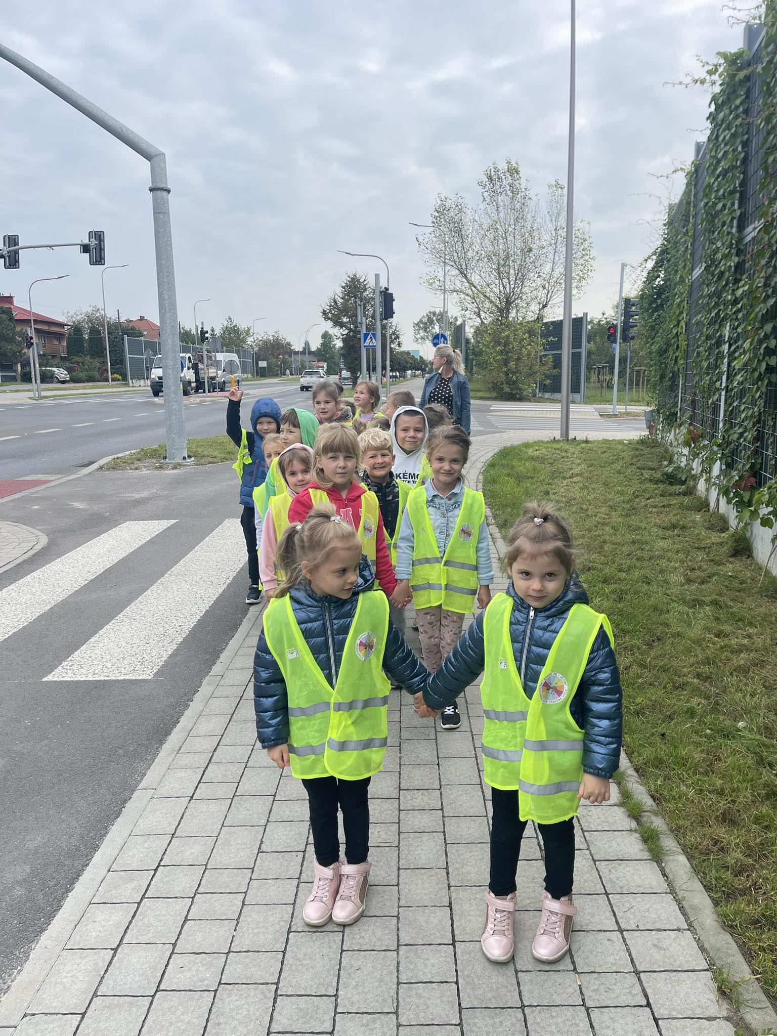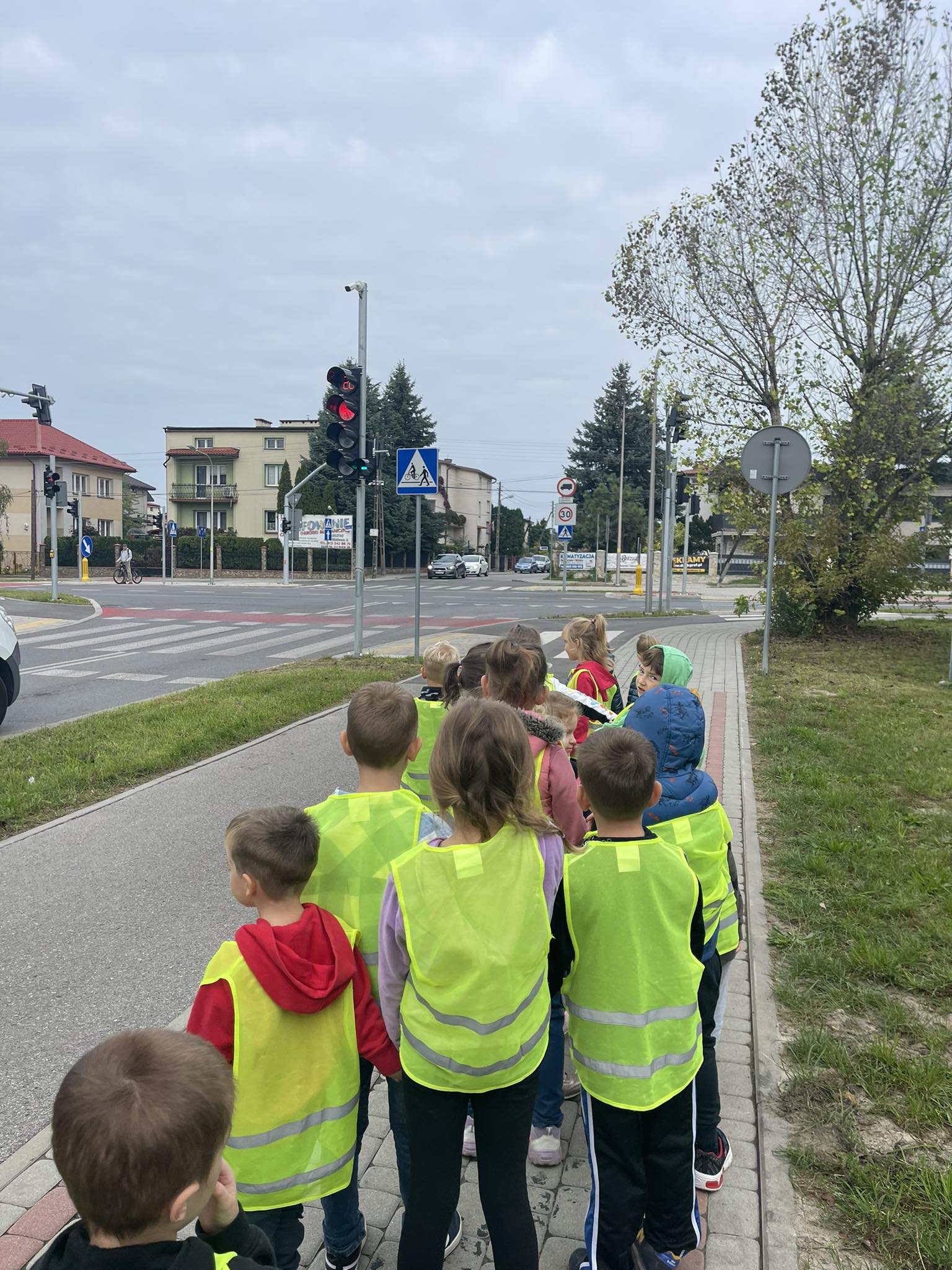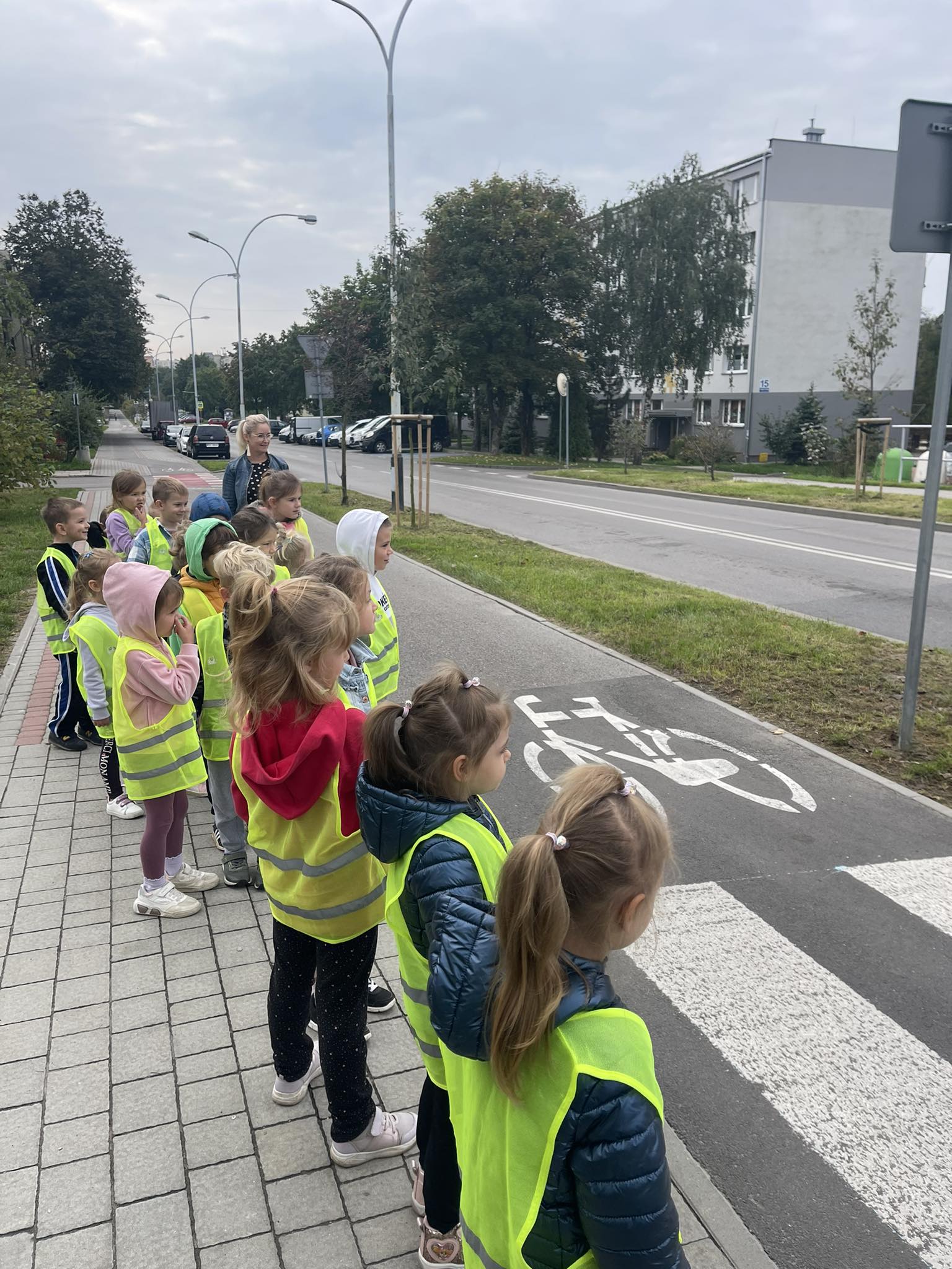 Grupa „Motylki“ wybrała się na pobliskie skrzyżowanie w celu praktycznej nauki przechodzenia przez jezdnię. Dzieci zwróciły szczególną uwagę na wybrane znaki drogowe i sposób oznakowania przejścia dla pieszych. Obserwowały również zachowanie pieszych i pojazdów w ruchu ulicznym, a także przechodziły na drugą stronę ulicy z zachowaniem zasad bezpieczeństwa.