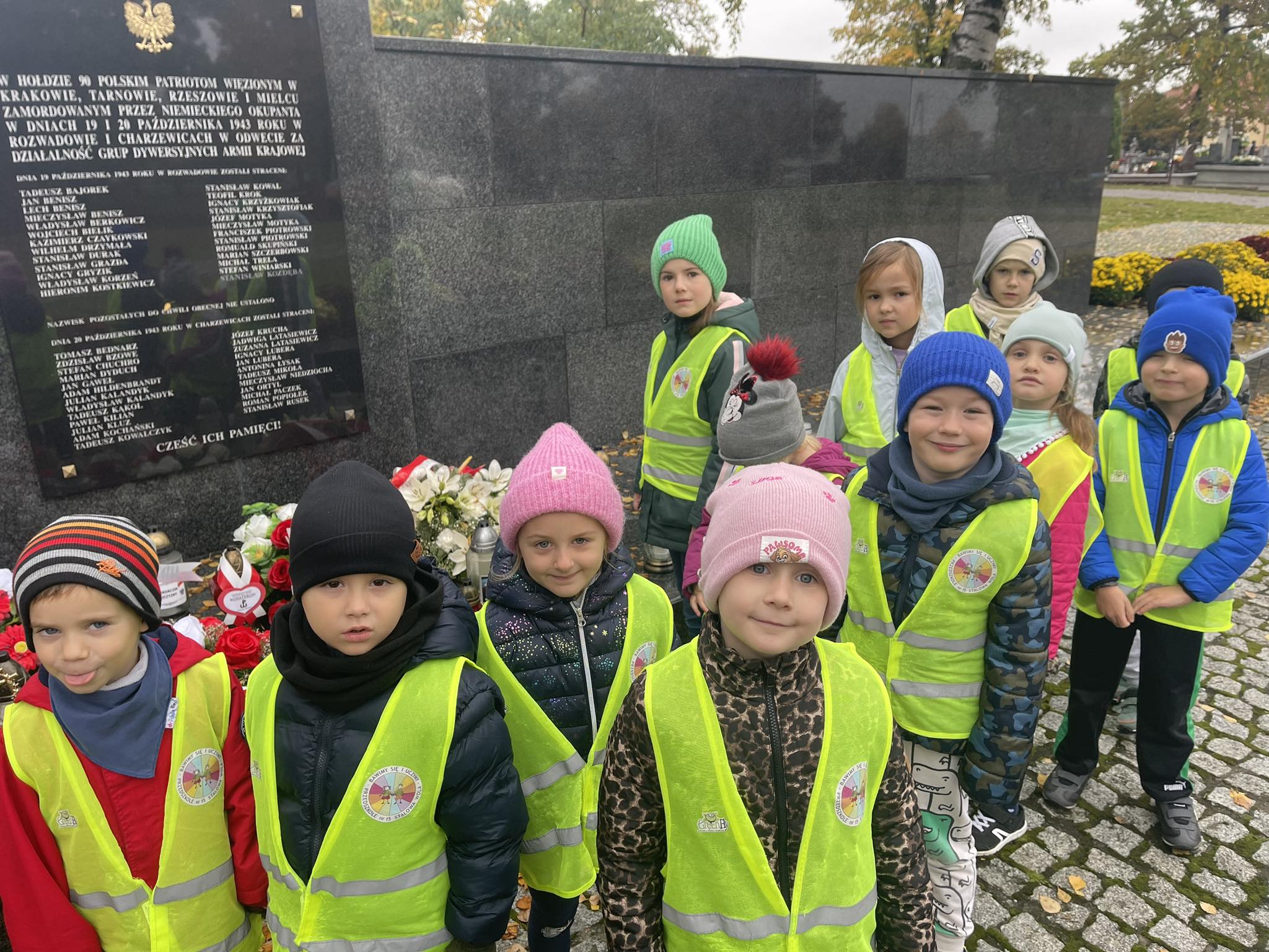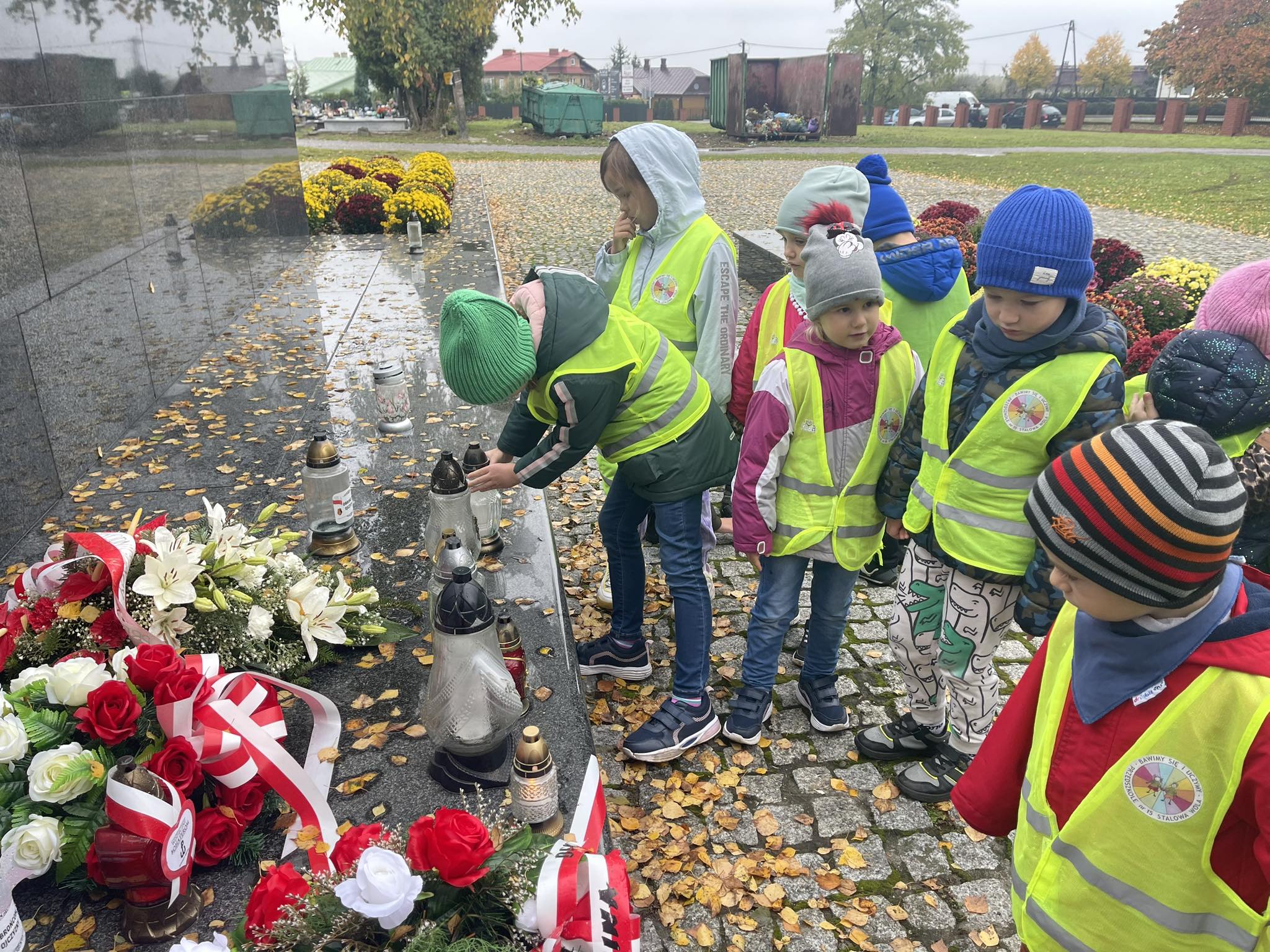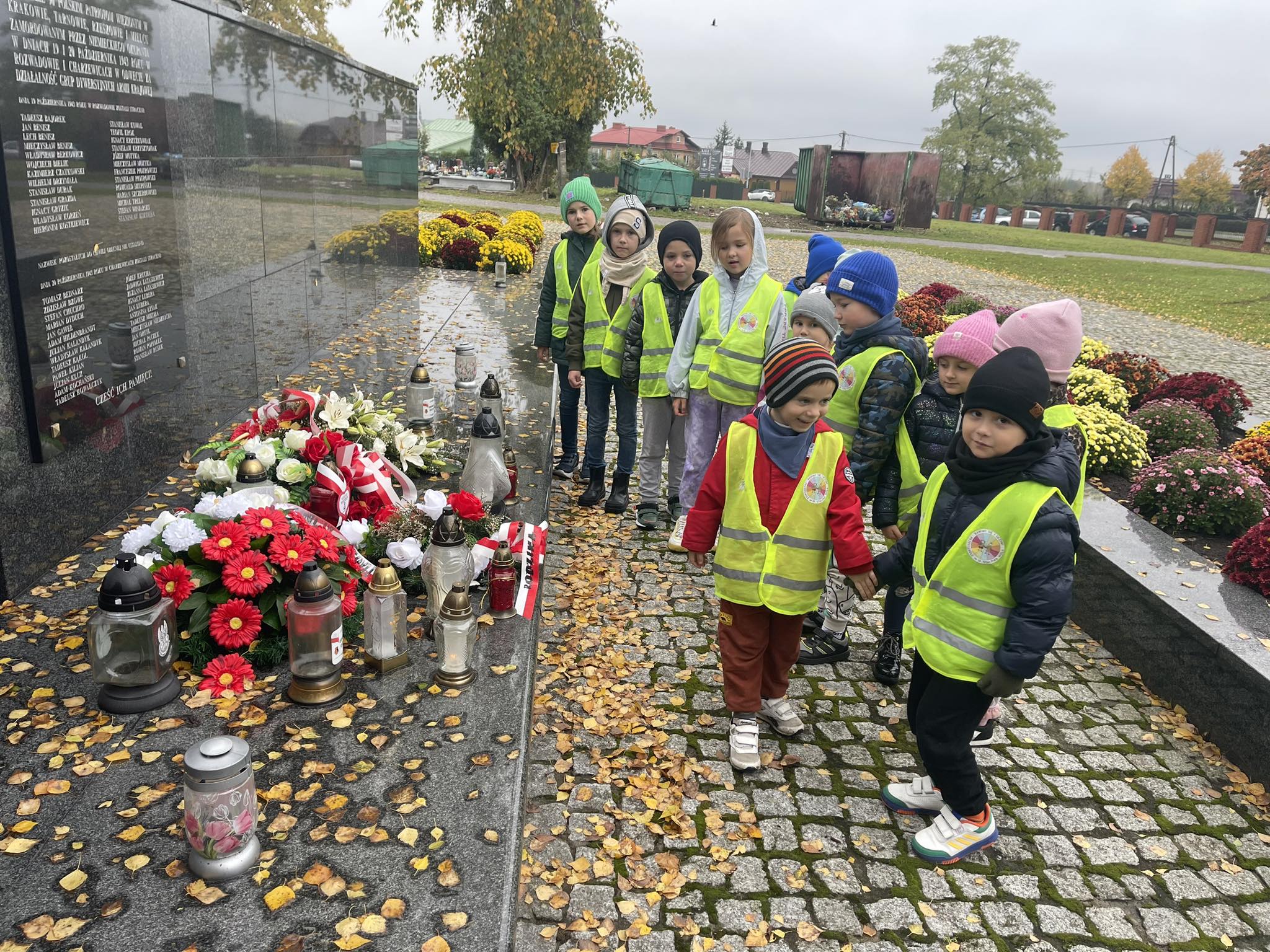 W związku ze zbliżającym się Świętem Zmarłych dzieci z grupy „Motylki“ wybrały się na pobliski cmentarz. W czasie wycieczki, dzieci poznały tradycje oraz zwyczaje związane ze świętem zmarłych w naszej kulturze i religii. Przypomniały sobie również jak należy zachowywać się na cmentarzy, by nie zakłócić spokoju zmarłych i osób odwiedzających to miejsce. To była bardzo ważna lekcja wychowania rodzinnego, obywatelskiego oraz patriotycznego.