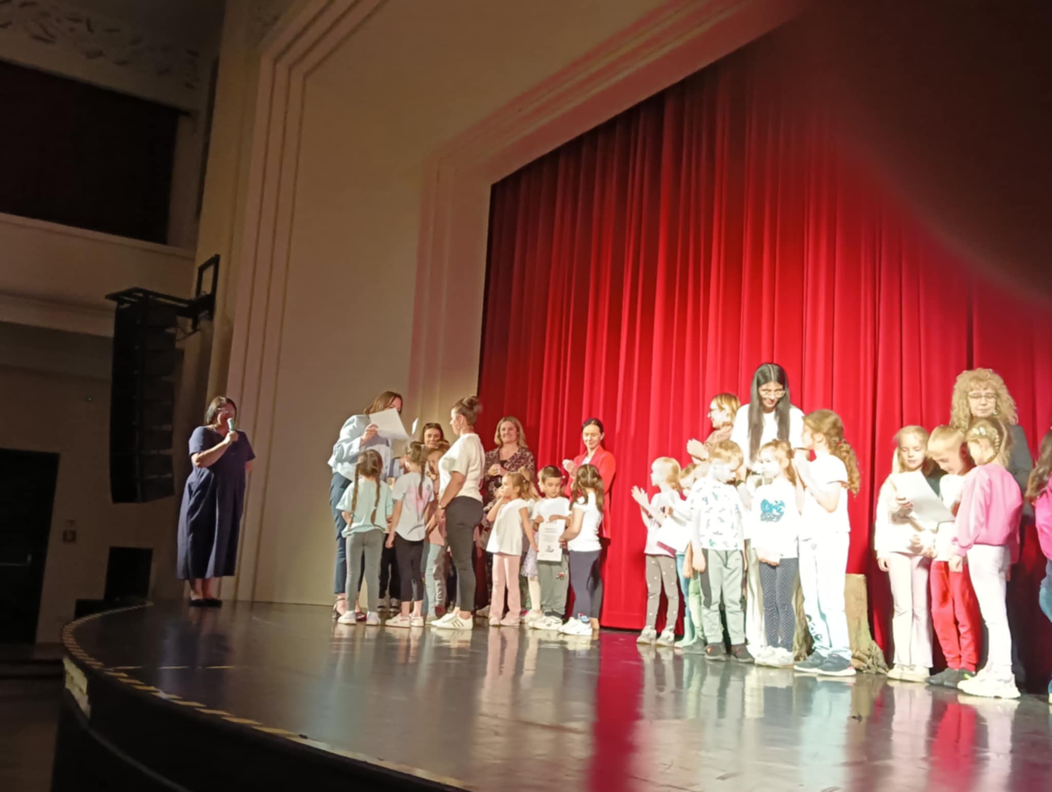 11.06.2025 r. odbyła się wycieczka do Miejskiego Domu Kultury w Stalowej Woli na przedstawienie teatralne pt. ,,Przygody zazdrosnego Liliputka” podsumowującego projekt edukacyjny ,,Cyfrowy Świat Myszki Pikselki” organizowanego Przedszkole Integracyjne nr 12 w Stalowej Woli. Nasza grupa za udział w projekcie otrzymała dyplom dla przedszkola z rąk pani Naczelnik Wydziału Edukacji i Zdrowia w Stalowej Woli. Celem projektu było wdrażanie do umiejętnego korzystania z nowoczesnych technologii, poznanie i zrozumienie zagrożeń dla zdrowia wynikających z nadmiernego spędzania czasu przy komputerze.