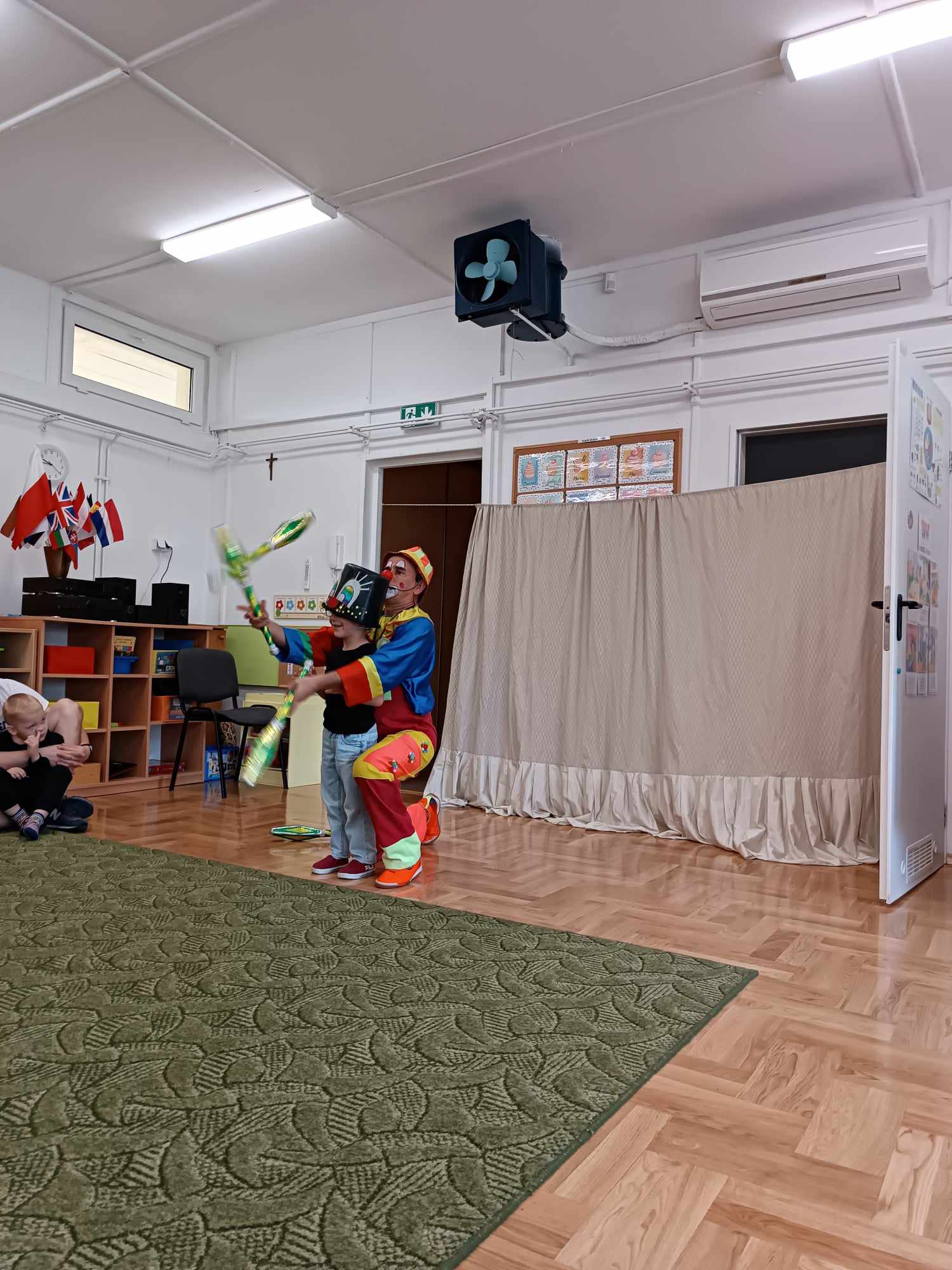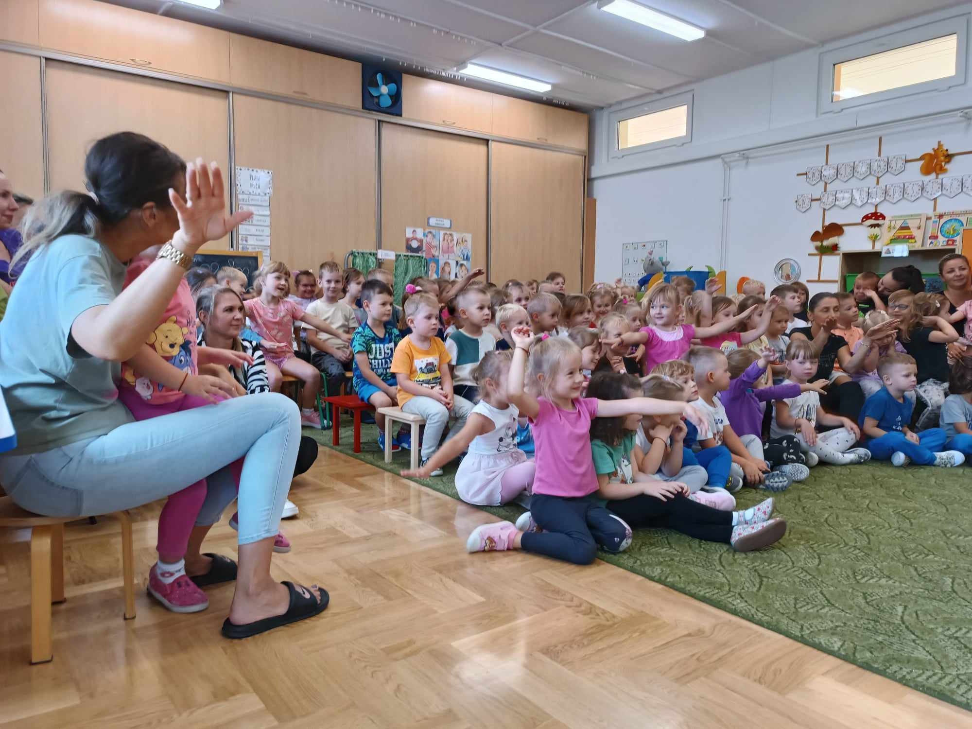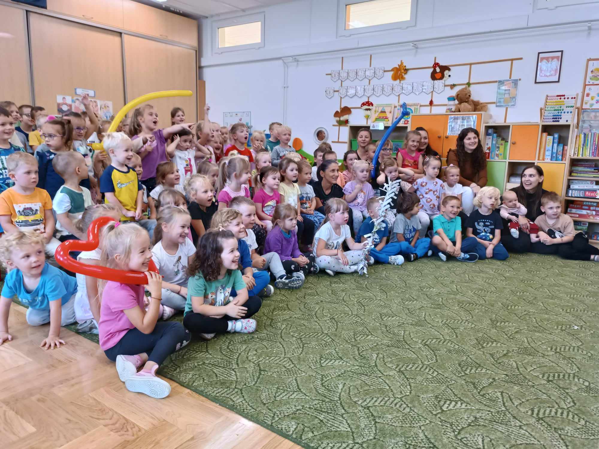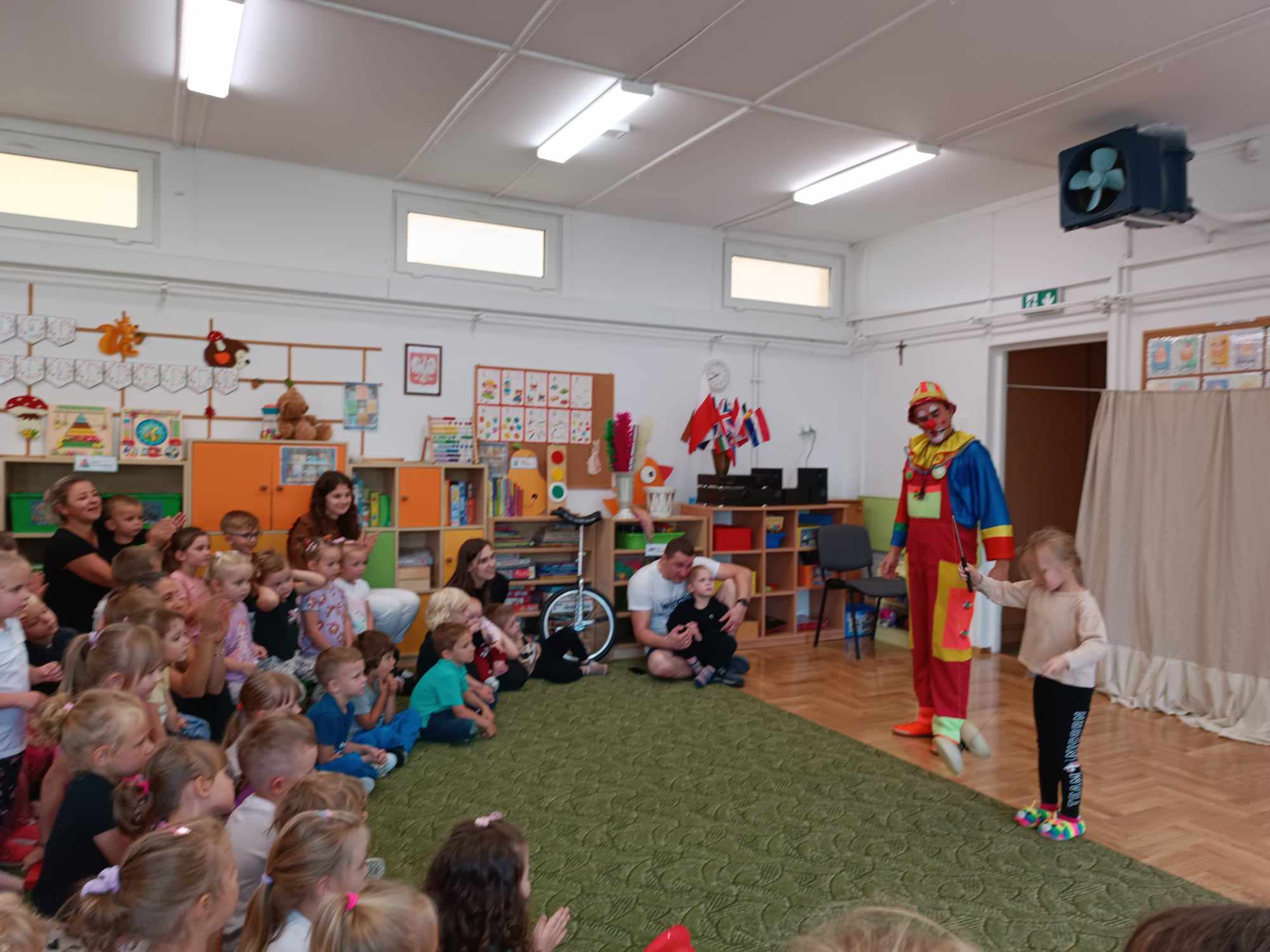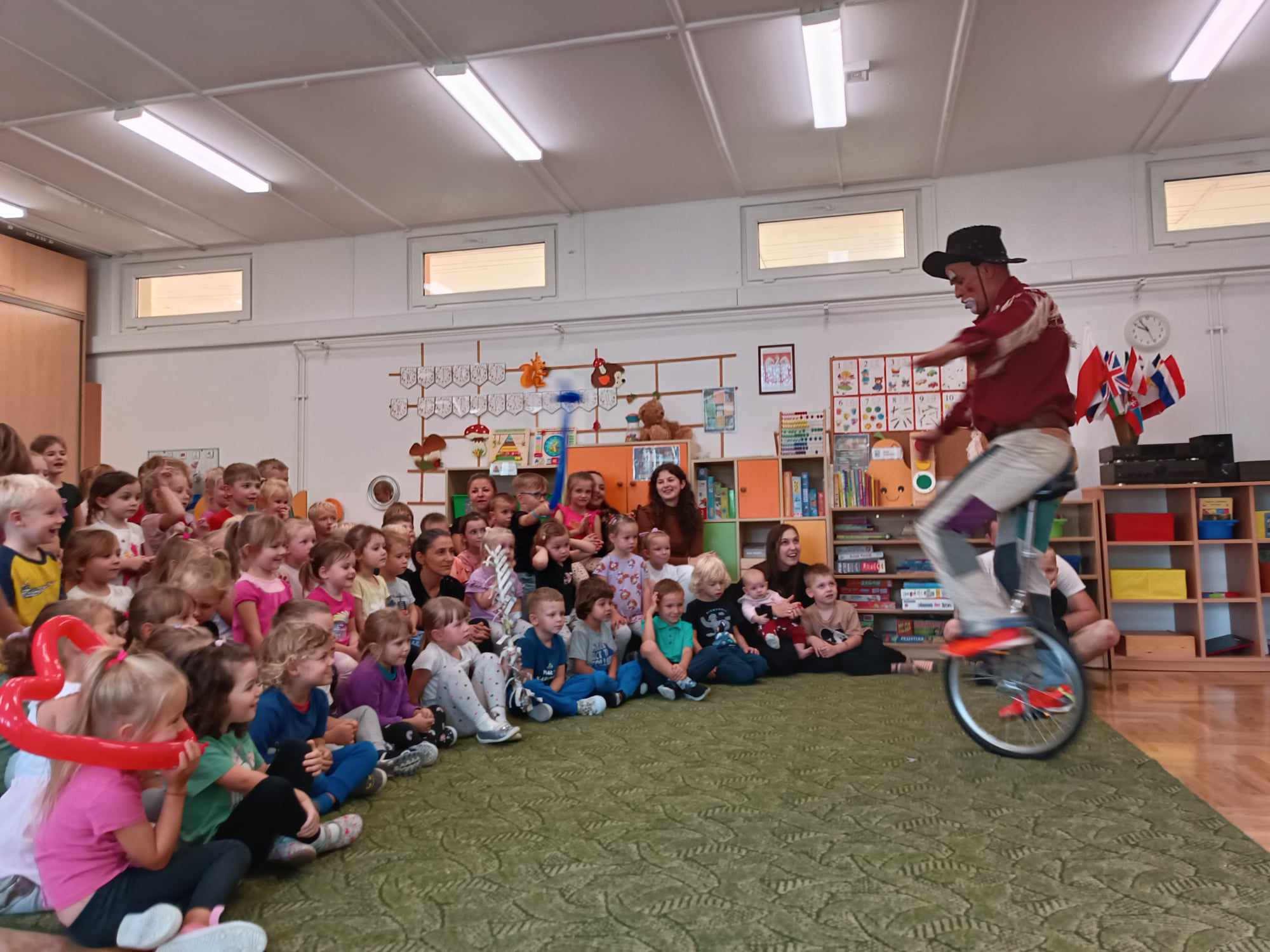 25.09.2023 r. nasze przedszkole odwiedzili uwielbiani przez przedszkolaki artyści cyrku „Kaskada“. Dzieci z prawdziwym podziwem i zaciekawieniem oglądały pokaz wielu cyrkowych sztuczek, w tym żonglerki piłeczkami, akrobacje obręczami hula-hop, jazdę na monocyklu. Występ cyrkowy umilał clown, który w pewnym momencie wyczarował nawet prawdziwego królika. Artyści zaangażowali też naszych chętnych i niewątpliwie odważnych przedszkolaków, którzy na własne oczy mogli przekonać się, czym jest sztuka cyrkowa. Występ bardzo spodobał się widzom, którzy głośno oklaskiwali artystów, z pewnością przyniósł on dzieciom wiele radości i miłych chwil.