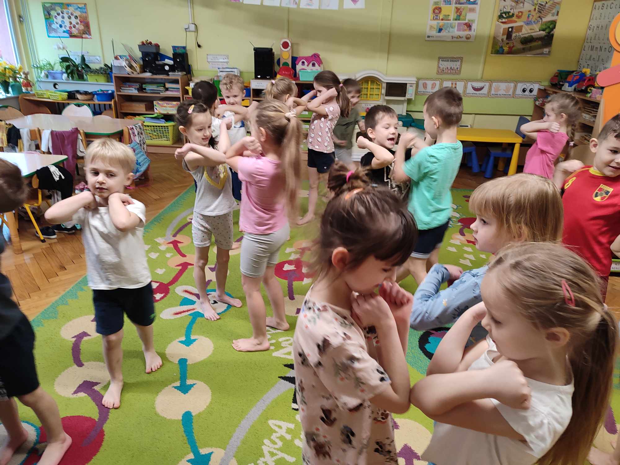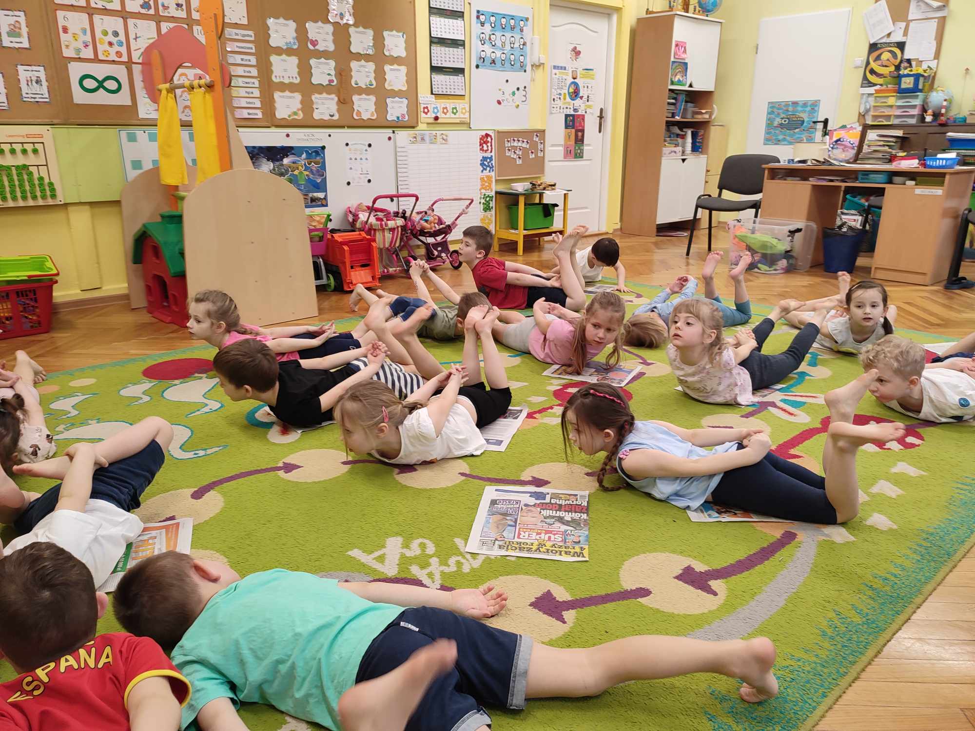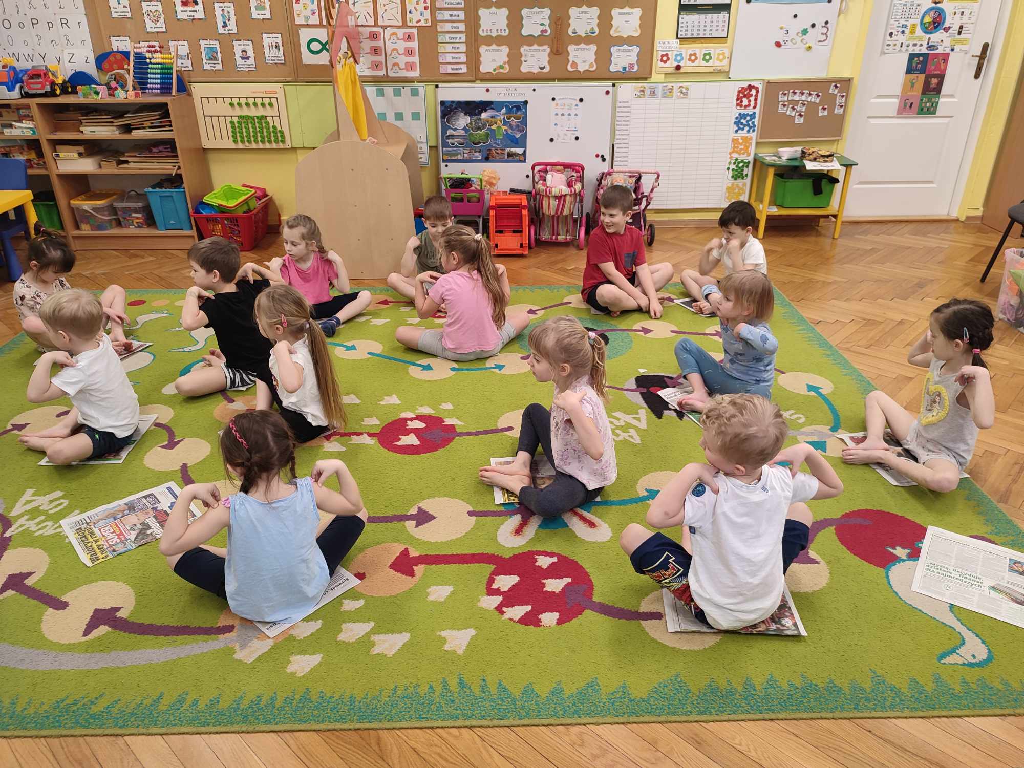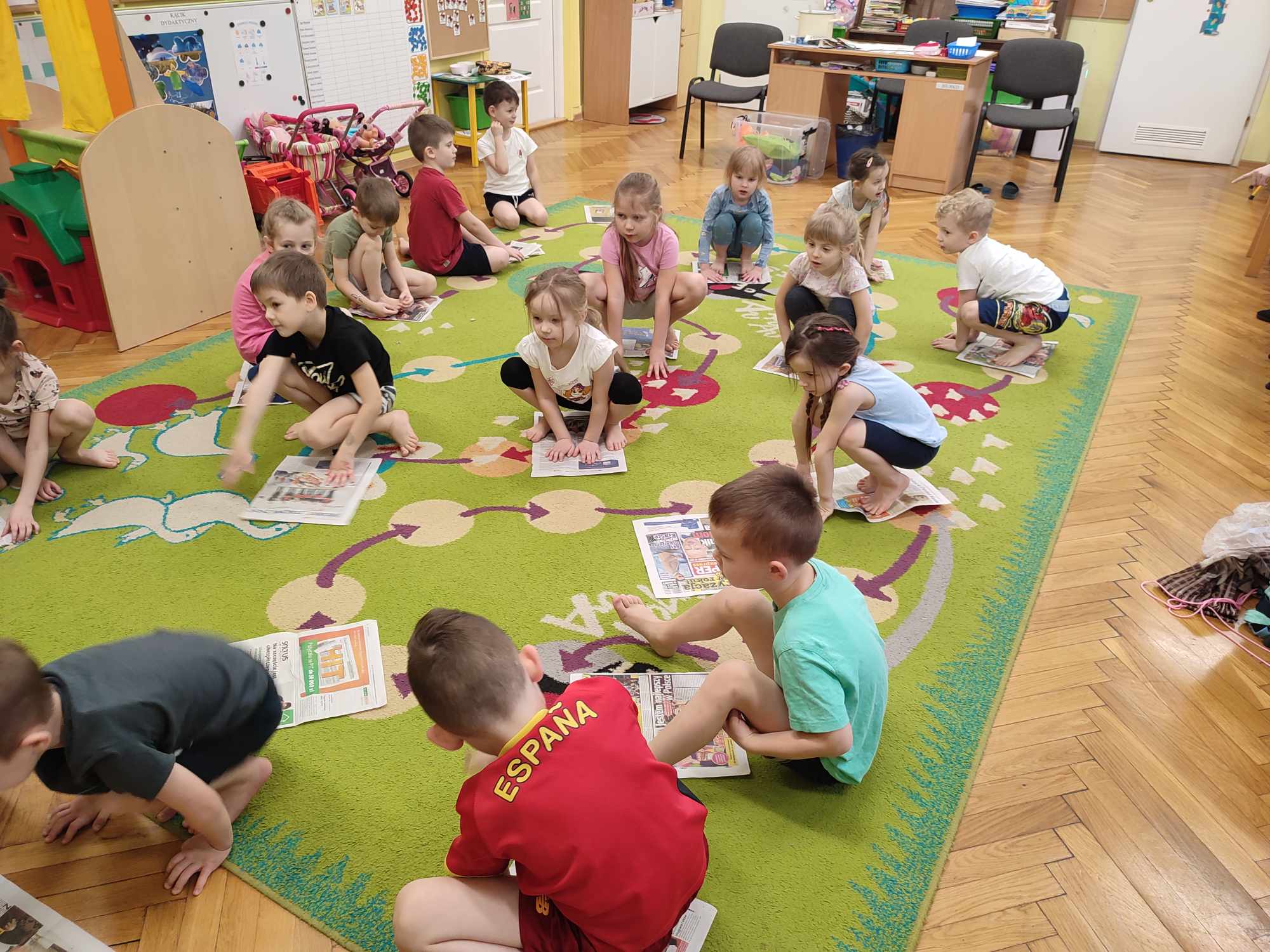 Zabawy ruchowe z gazetami w grupie Biedronki