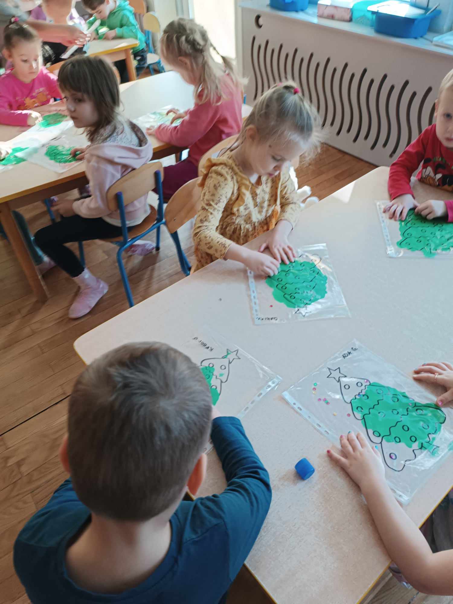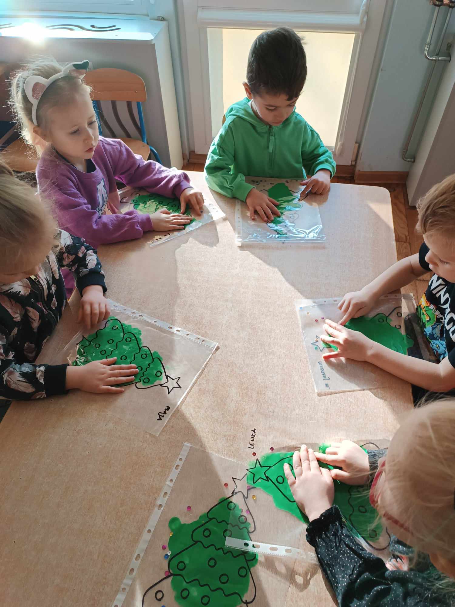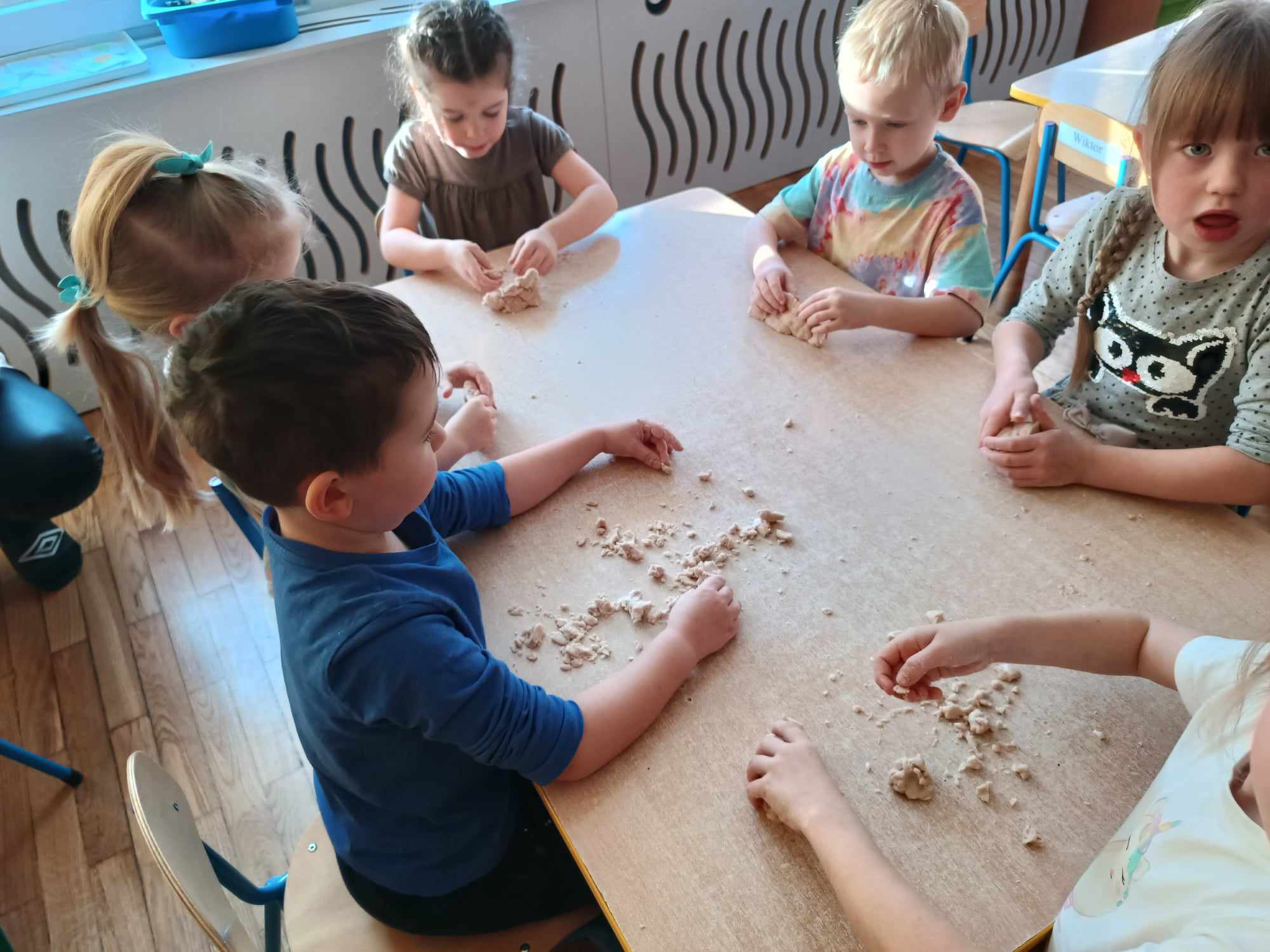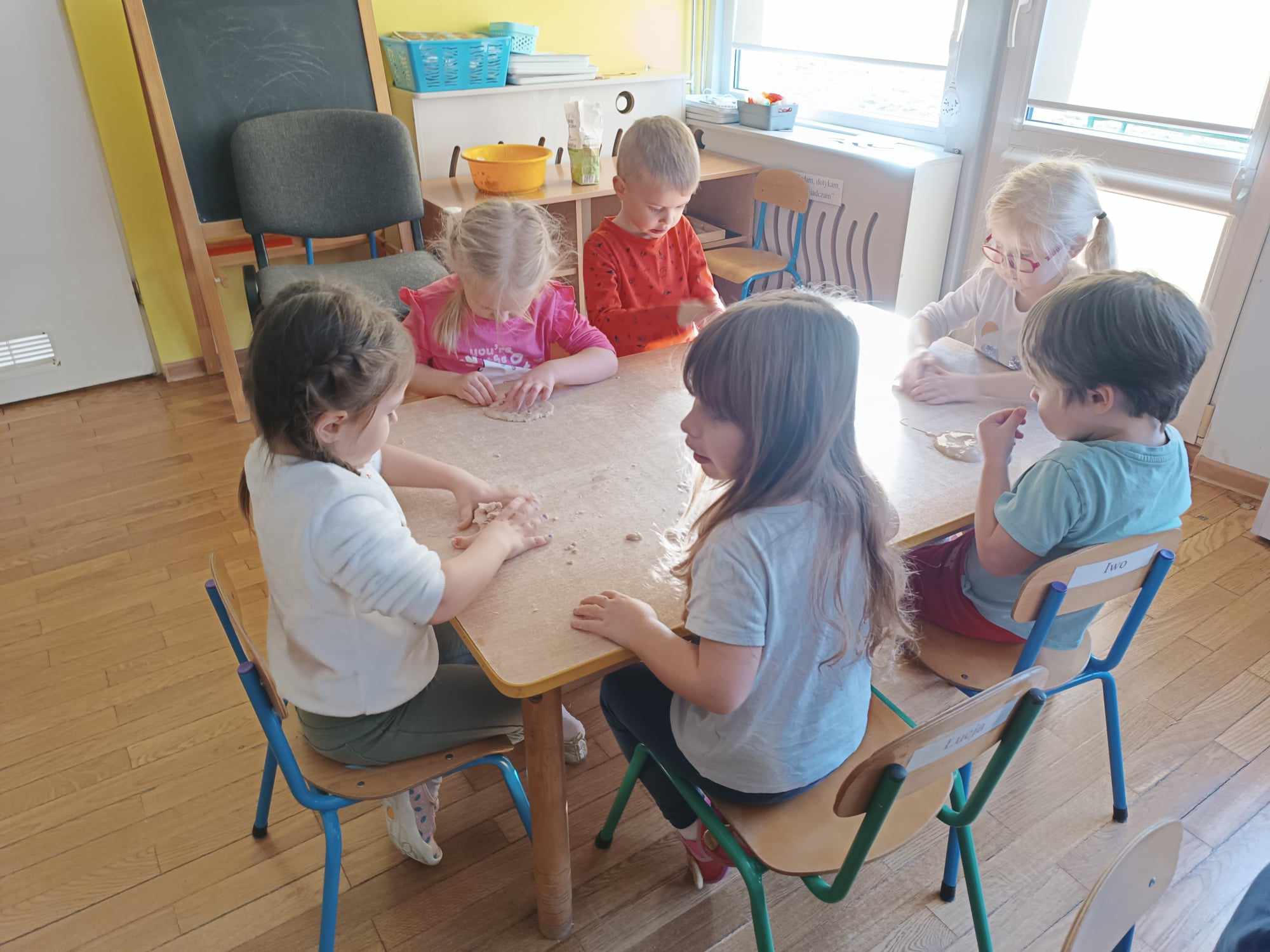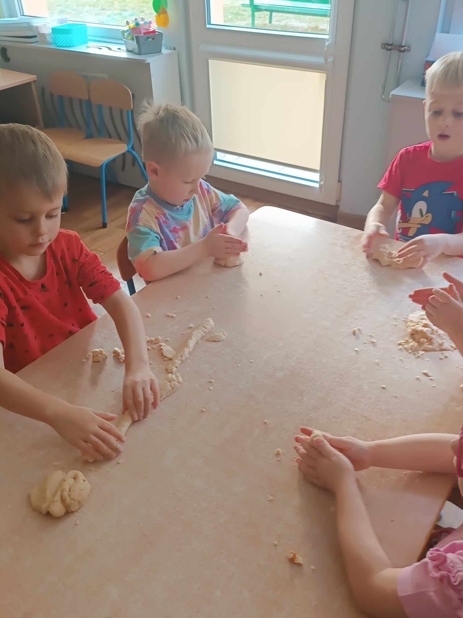 Przedszkolaki z grupy „Misie“ realizują w tym roku szkolnym program wspierania rozwoju dziecka poprzez zabawy sensoryczne „Daj się dziecku ubrudzić“. Celem programu jest przede wszystkim dostarczanie różnorodnych bodźców sensorycznych, które oddziałują na jeden lub kilka zmysłów jednocześnie. Wspierając rozwój zmysłów, wpływamy na wiele aspektów- dużą i małą motorykę. Doskonalimy też funkcje poznawcze, w tym koncentrację uwagi, pamięć, myślenie i rozwiązywanie problemów. „Misie“ wykonały dotychczas m.in. jabłkolinę, sensoryczne choinki, czy też bawiły się piernikową ciastoliną. Każda z tych zabaw dała dzieciom możliwość stymulacji zmysłów.