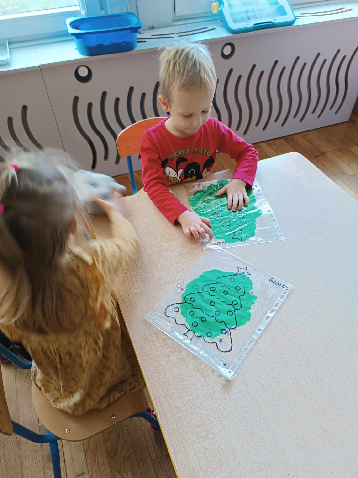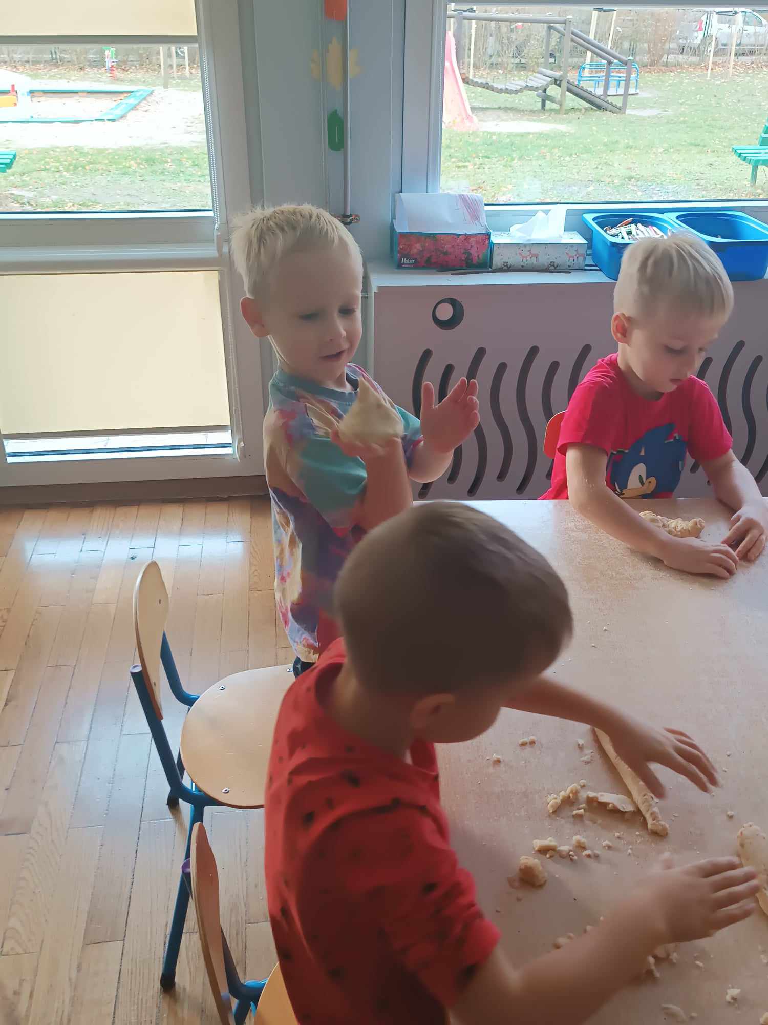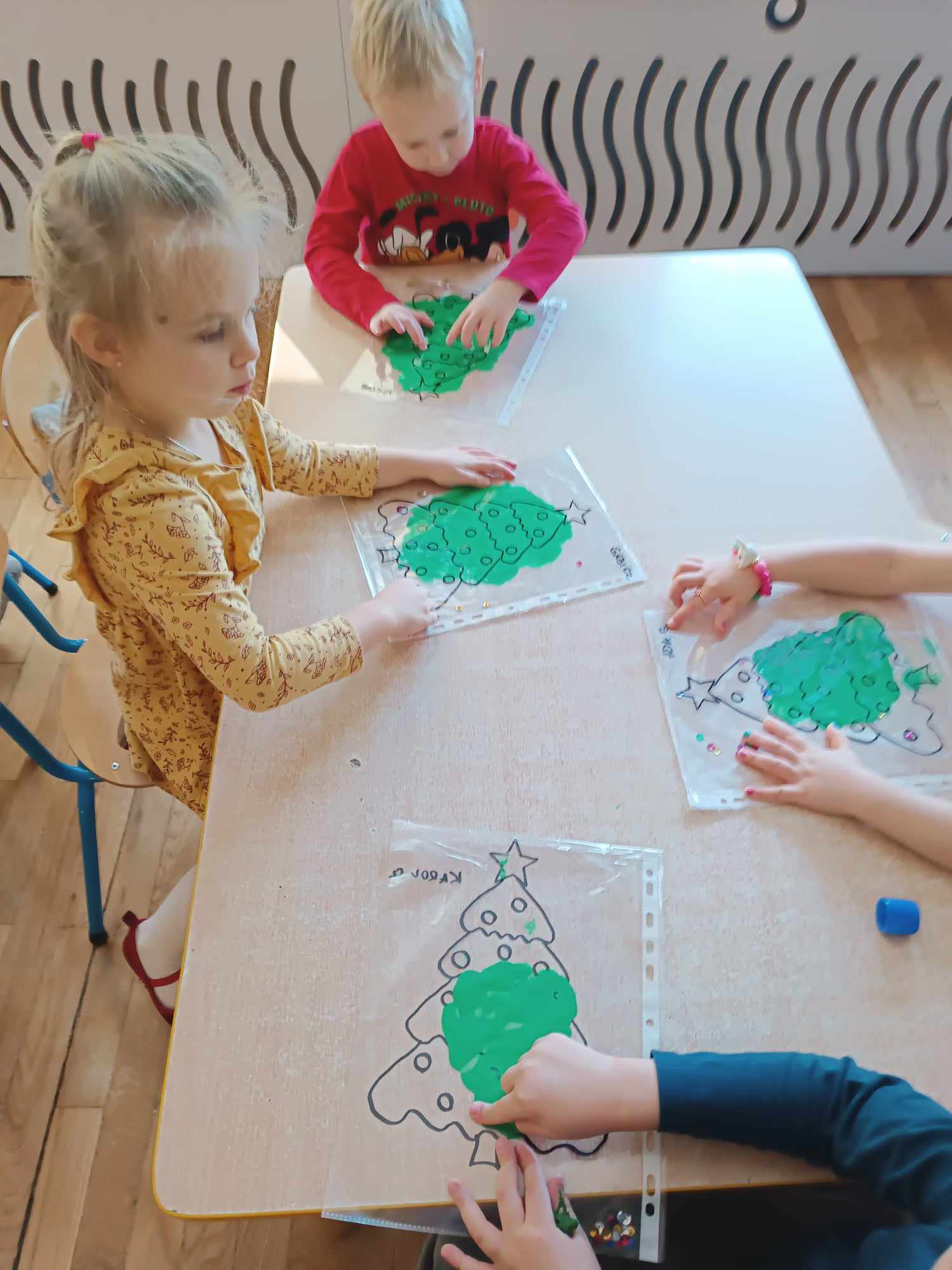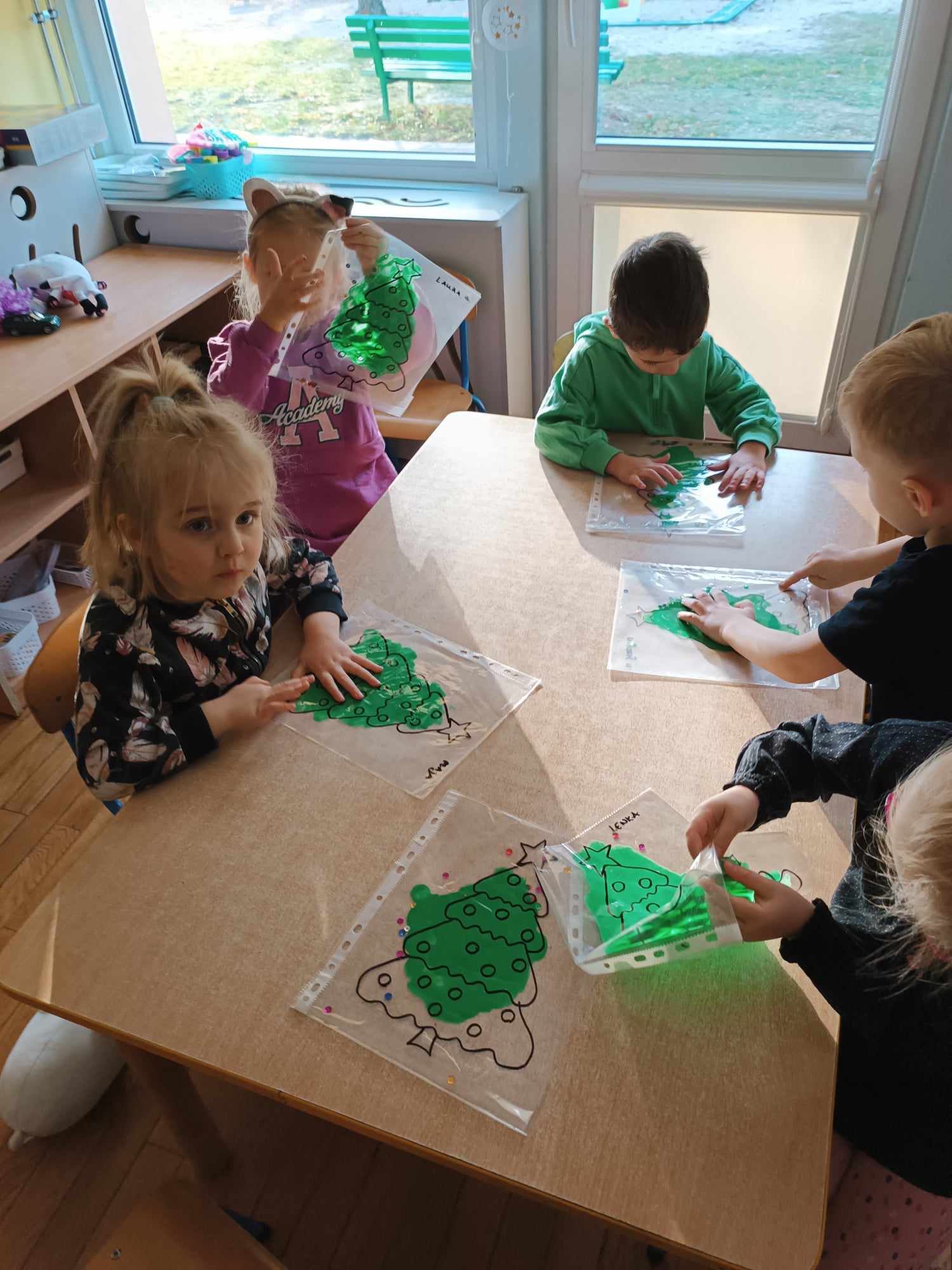 Przedszkolaki z grupy „Misie“ realizują w tym roku szkolnym program wspierania rozwoju dziecka poprzez zabawy sensoryczne „Daj się dziecku ubrudzić“. Celem programu jest przede wszystkim dostarczanie różnorodnych bodźców sensorycznych, które oddziałują na jeden lub kilka zmysłów jednocześnie. Wspierając rozwój zmysłów, wpływamy na wiele aspektów- dużą i małą motorykę. Doskonalimy też funkcje poznawcze, w tym koncentrację uwagi, pamięć, myślenie i rozwiązywanie problemów. „Misie“ wykonały dotychczas m.in. jabłkolinę, sensoryczne choinki, czy też bawiły się piernikową ciastoliną. Każda z tych zabaw dała dzieciom możliwość stymulacji zmysłów.