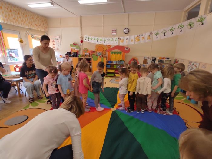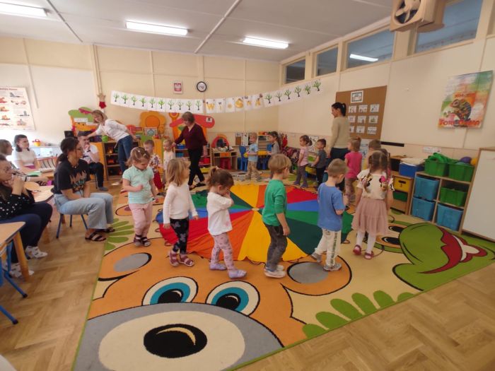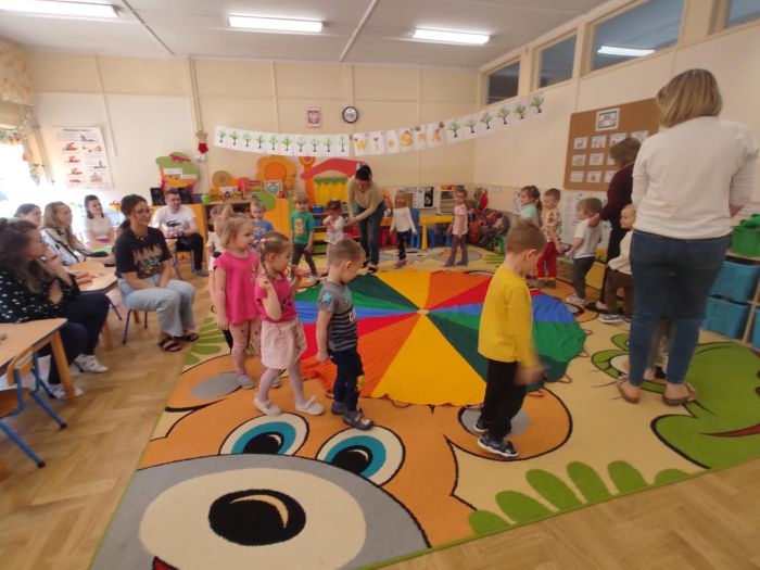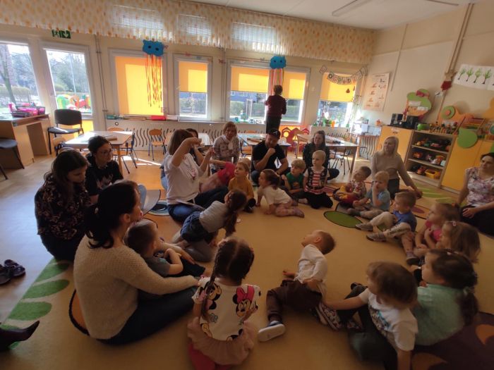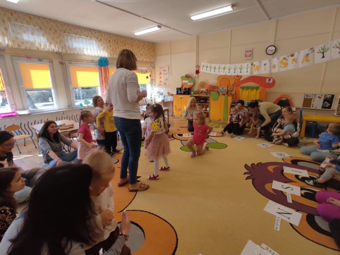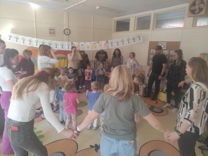 W środę 26.03.2025r., w grupie "Krasnale " odbyło się zajęcie otwarte z udziałem rodziców. Zajęcia otwarte są jedną z form współpracy z rodzicami. Stanowią okazję do integracji środowiska przedszkolnego zarówno na linii rodzic – wychowawca, jak również integracji wszystkich rodziców dzieci z tej samej grupy przedszkolnej, a także wzmacniania więzi pomiędzy dzieckiem, a rodzicem. Dzieci od samego rana z wielką niecierpliwością oczekiwały wizyty bliskich. W czasie zajęć wspólnie z rodzicami i babciami uczestniczyły w zabawach przy muzyce, utrwalały swoją wiedzę na temat środowiska naturalnego – wiosenne przebudzenia zwierząt. Wykonały barwną pracę plastyczną - wiosenny narcyz. Zabawy i radości było mnóstwo, a najszczęśliwsze tego dnia były dzieci, które mogły z rodzicami i innymi bliskimi przyjemnie spędzić czas w przedszkolu.