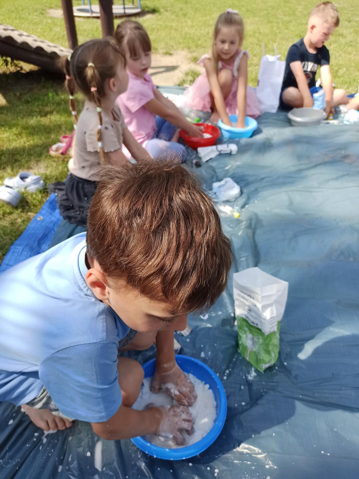 W ostatnie dni czerwca dzieci z grupy Biedronki wykorzystując piękną pogodę wzięły udział w zajęciach „ Sensoplastyka – zmysł węchu“. Zajęcia te mają na celu rozwój osobowości dzieci, usprawnienie ruchowe, usprawnienie manualne (a w tym doskonalenie precyzji dłoni, ćwiczenie mięśnie dłoni), rozwijanie świadomości własnego ciała, uspołecznianie, rozwój samodzielności i zwiększenie wiary we własne możliwości, rozwój mowy, rozwój świadomości przestrzeni i działania w niej oraz nauka dzielenia tej przestrzeni z innymi ludźmi. Na zajęciach dzieci nadpobudliwe uczą się wyciszać emocje, natomiast apatyczne rozbudzają się, mając motywację do działania – twórczego tworzenia. Biedronki były bardzo podekscytowane taką formą zajęć i bardzo chętnie przystąpiły do tworzenia, a w powietrzu zaczęły unosić się przepiękne zapachy olejków, przypraw i kawy. To były zajęcia które podobały się nam wszystkim i sprawiły wiele radości.